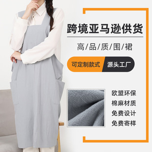 日韩棉麻围裙 ins风亚马逊跨境围裙定制奶茶店花店围裙定做
