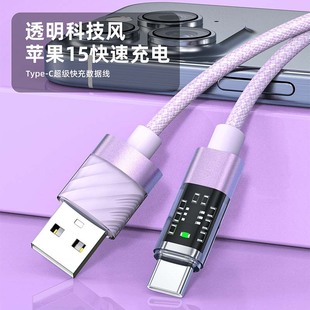 新款100w超级快充赛博透明数据线适用华为小米安卓苹果编织数据线