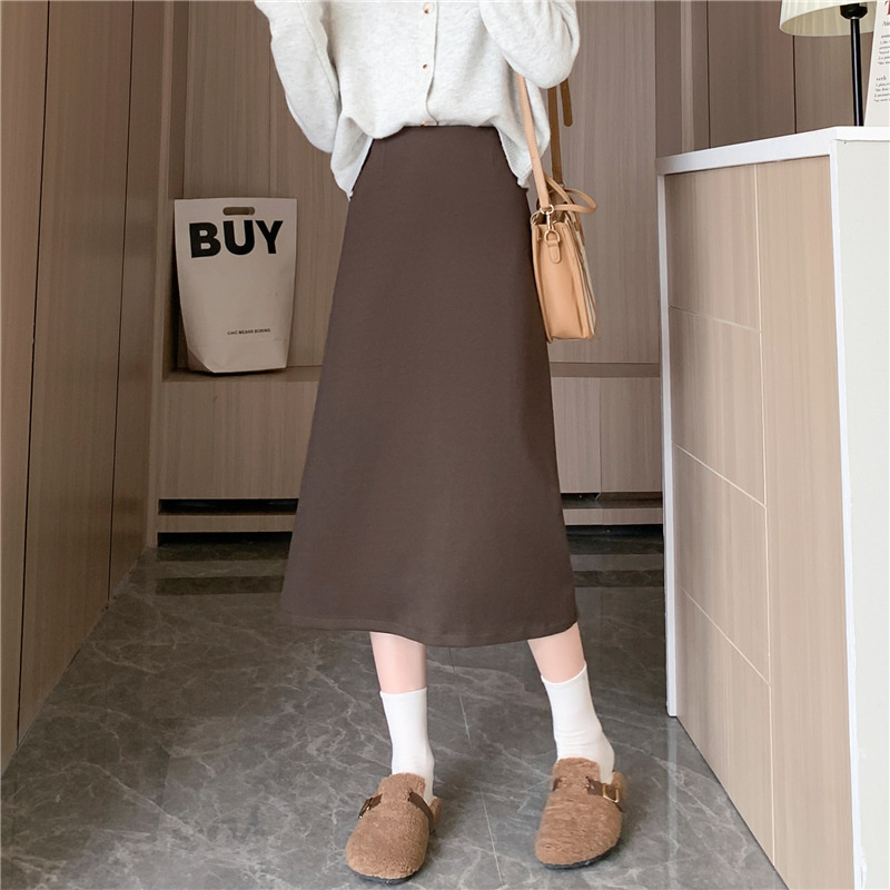리얼 샷 모직 스커트 여성의 2023 가을과 겨울 새로운 하이 웨이스트 중간 길이 세트 스커트 힙 스커트 A-라인 스커트 여성스토어 가기