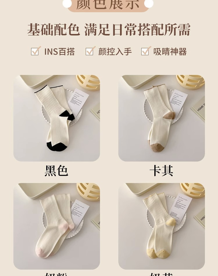 양말 유행 대비 색상의 여성용 중간 배럴 작은 빨간 책 여성의 봄과 가을 일본식 심플 크림 화이트 스택 양말 긴 배럴 양말스토어 가기