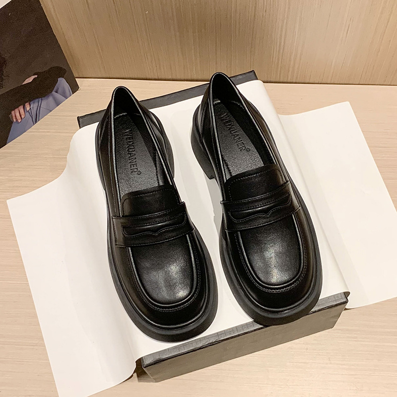 부드러운 소가죽 ~ Su Yinyin 같은 스타일 블랙 가죽 로퍼 여성용 소형 가죽 신발 영국 스타일 두꺼운 바닥 슬립온 싱글 슈즈