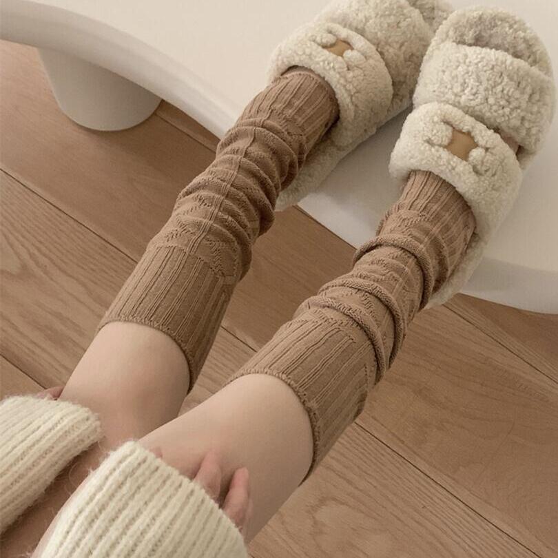 Maillard 가을과 겨울 빈티지 양말 여성용 검은 색 수직 곡물 더미 양말 우유 흰색 두꺼운 따뜻한 송아지 양말 니트 다리