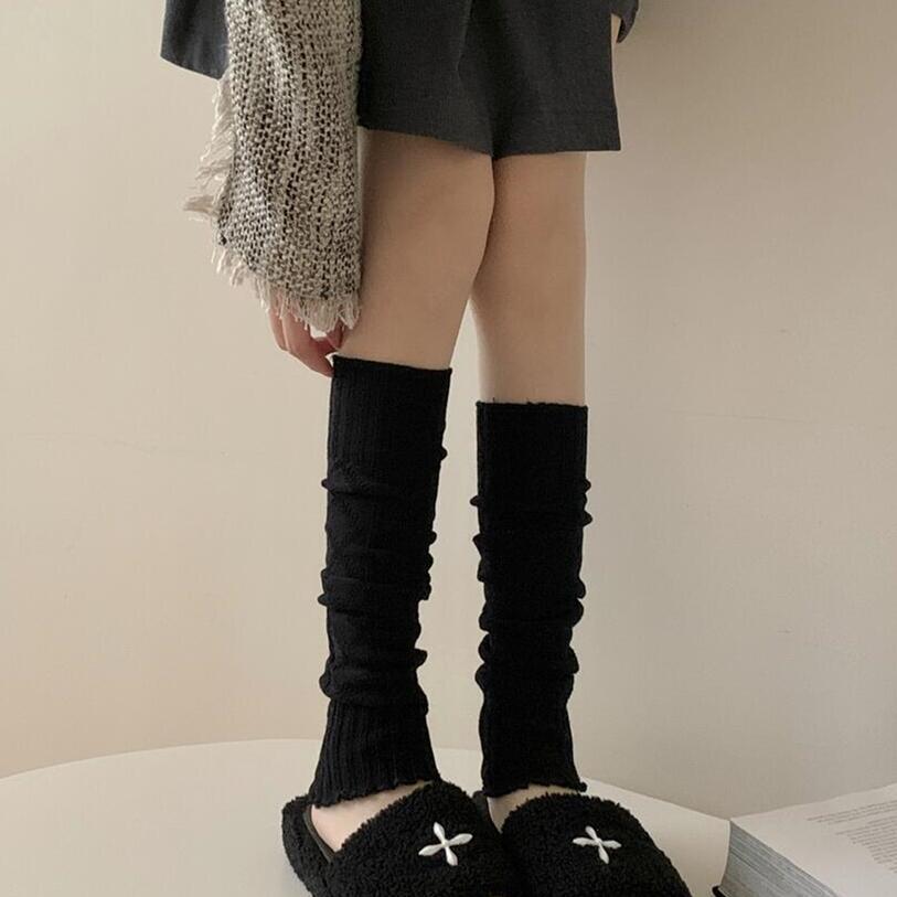 Maillard 가을과 겨울 빈티지 양말 여성용 검은 색 수직 곡물 더미 양말 우유 흰색 두꺼운 따뜻한 송아지 양말 니트 다리스토어 가기