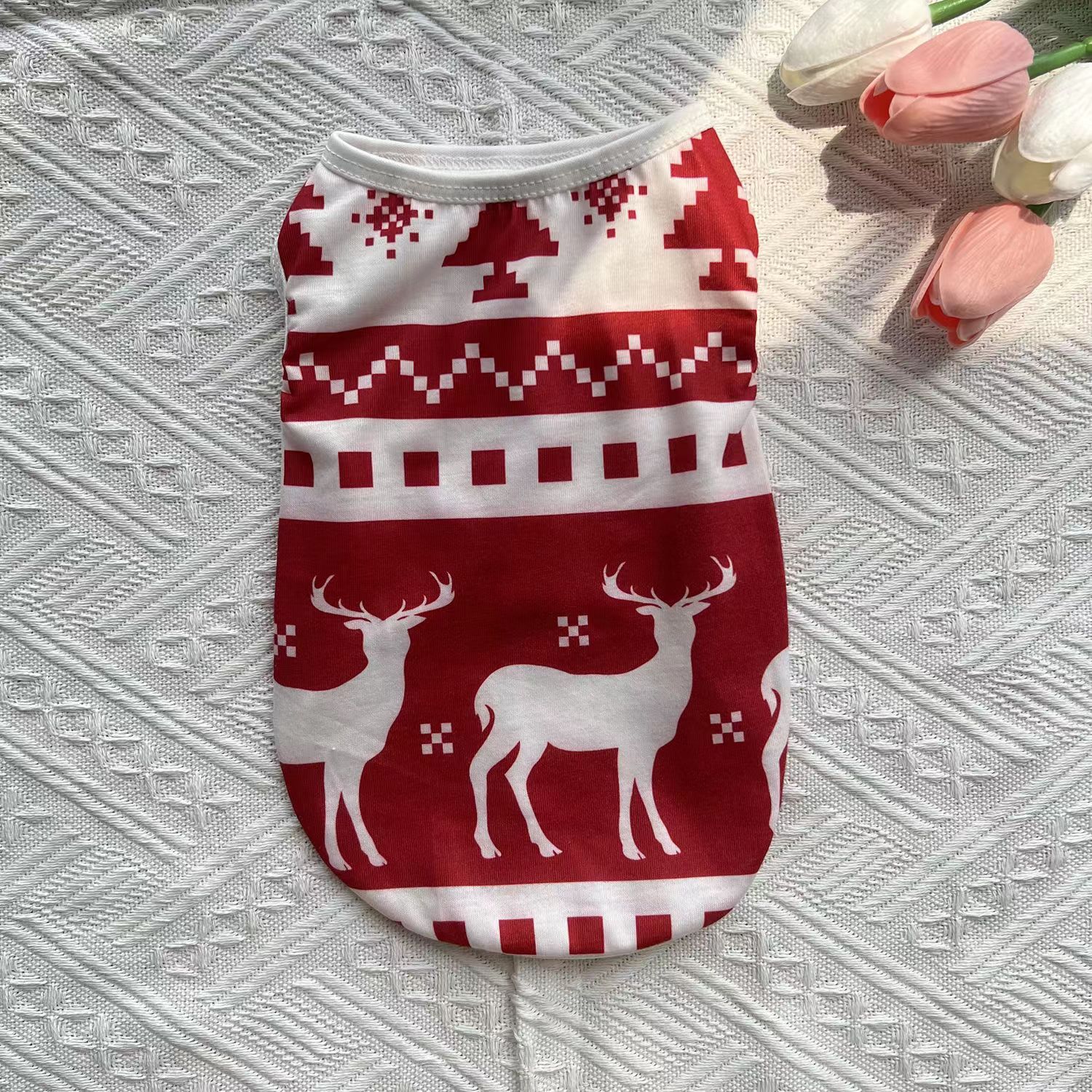 여름 크리스마스 스타일 조끼 애완 동물 개 고양이 얇은 통기성 테디 보메이 곰 작은 개 애완 동물 의류