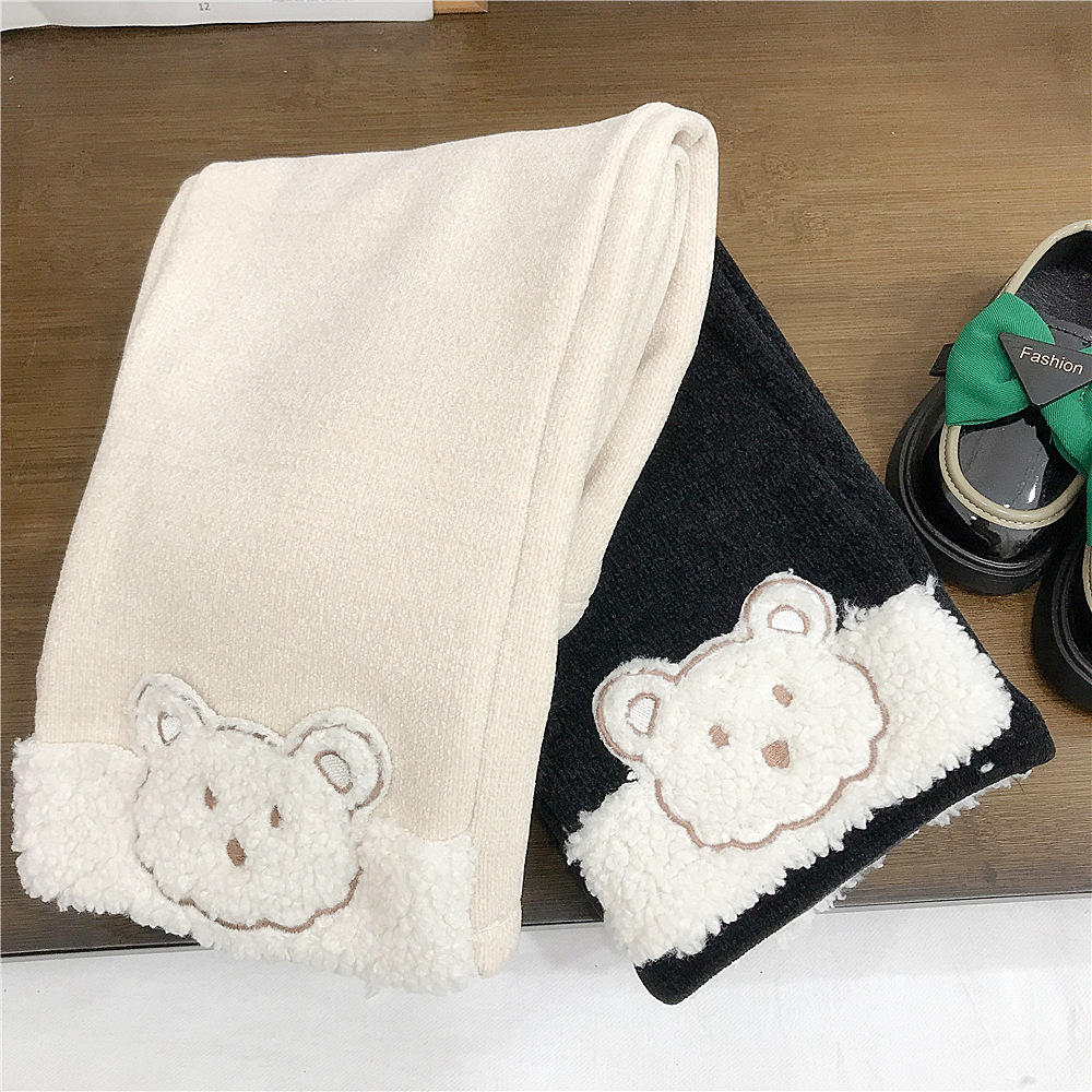 가을과 겨울 새로운 아기 소녀 만화 자수 플랜지 원피스 벨벳 스트레이트 팬츠 서양식 두꺼운 소녀 캐주얼 바지 해외 무역스토어 가기