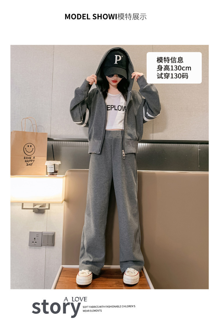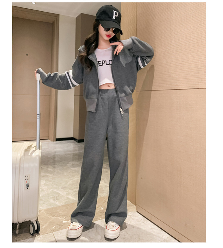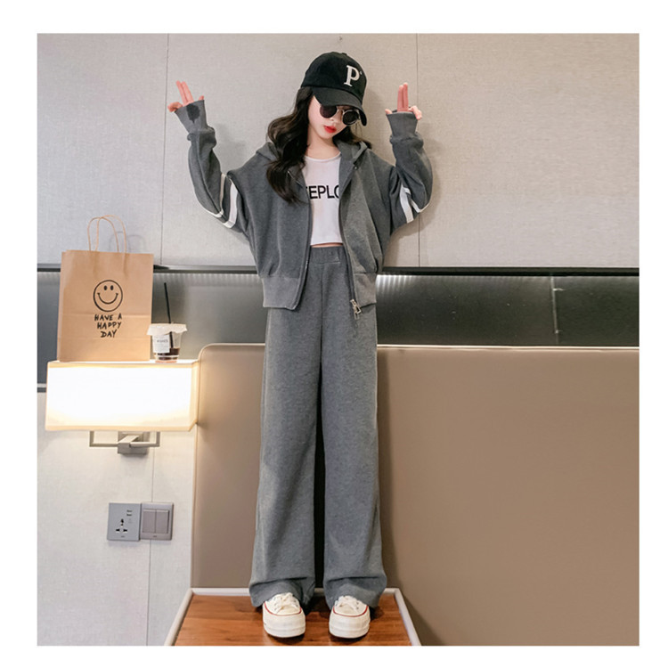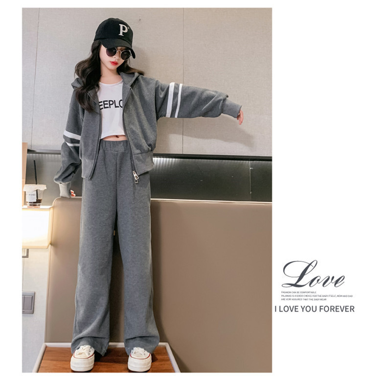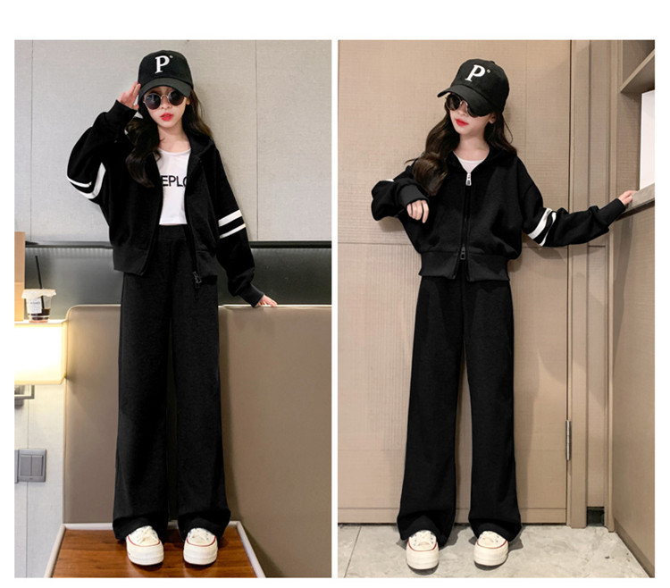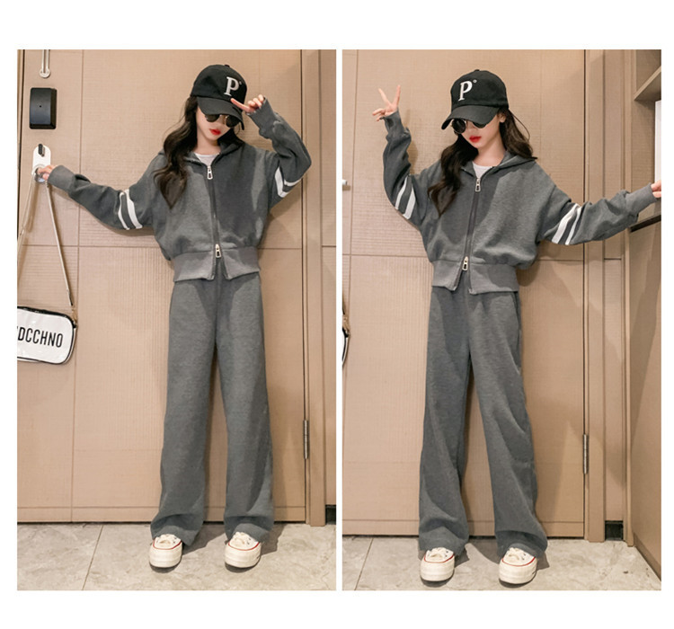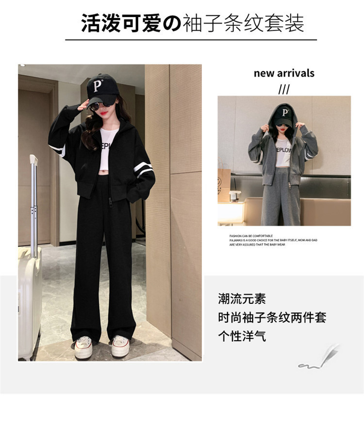 305 여아용 후드 스트라이프 세트 봄 신상 스타일리시 소녀 스포츠 후드티 와이드 팬츠 투피스 세트 트렌디스토어 가기