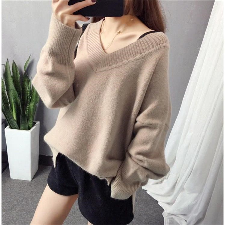 게으른 스타일 모든 매치 디자인 센스 V-넥 여성용 스웨터 가을과 겨울 기본 셔츠 풀오버 여성용 스웨터 단색 탑