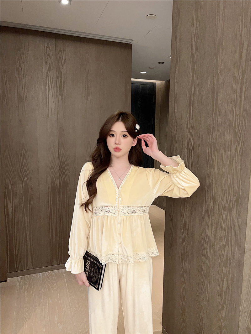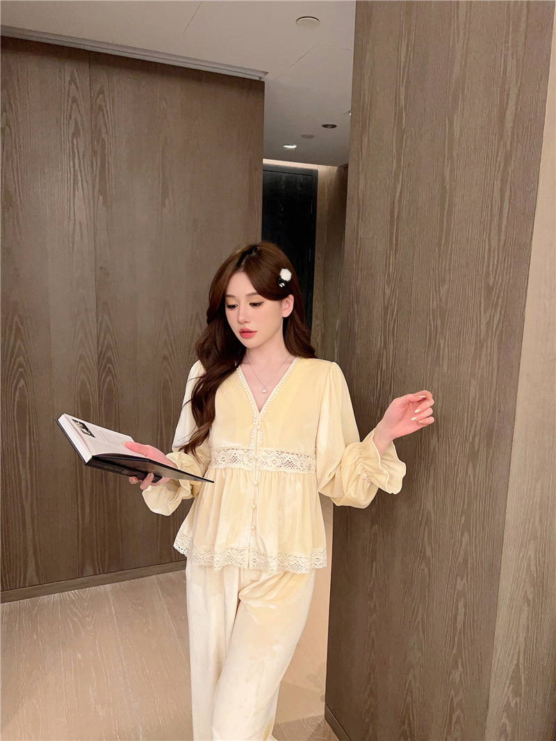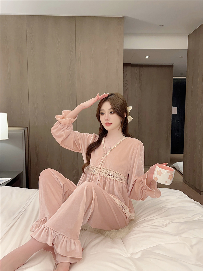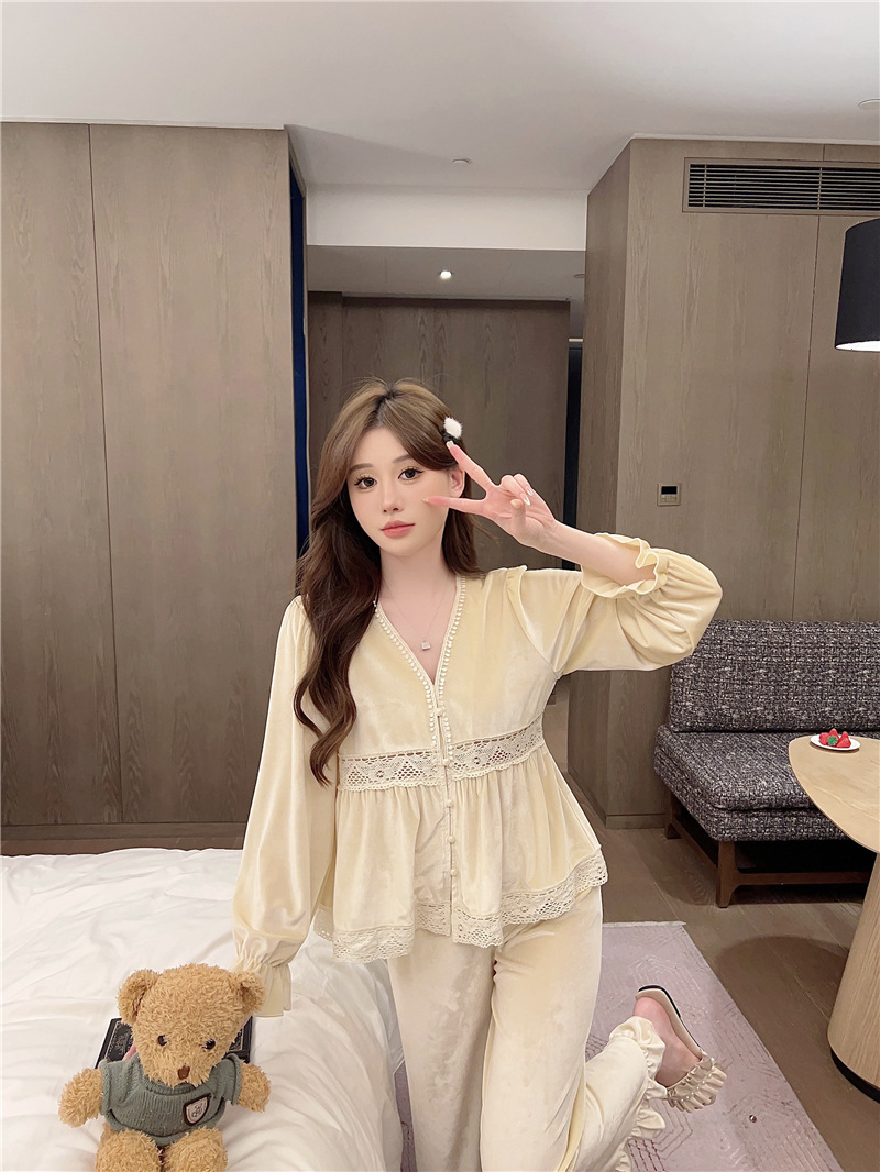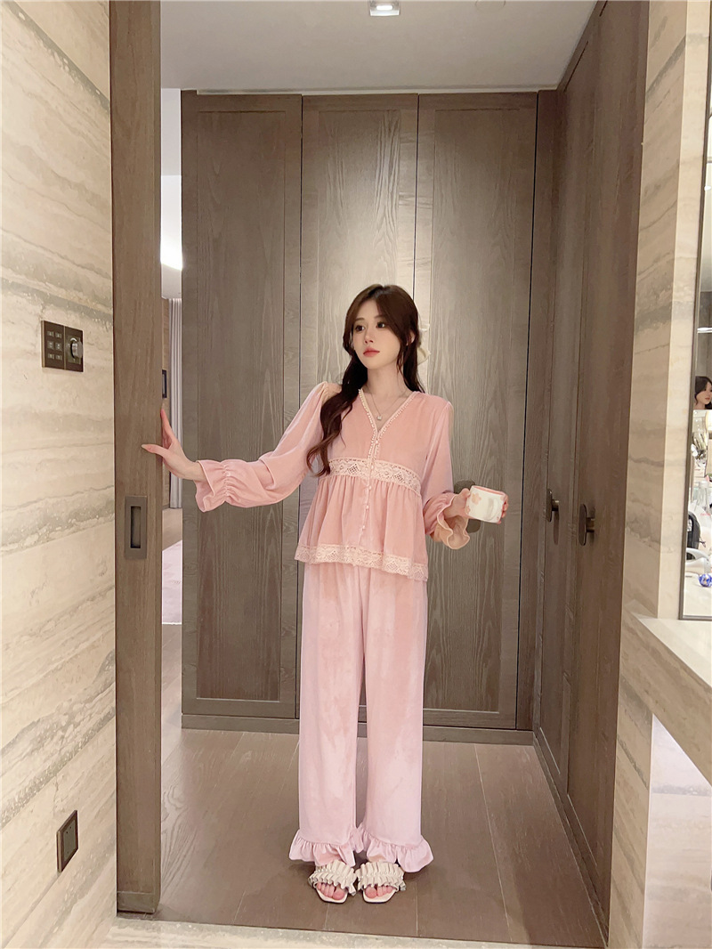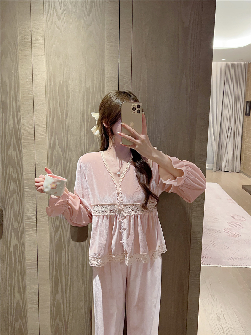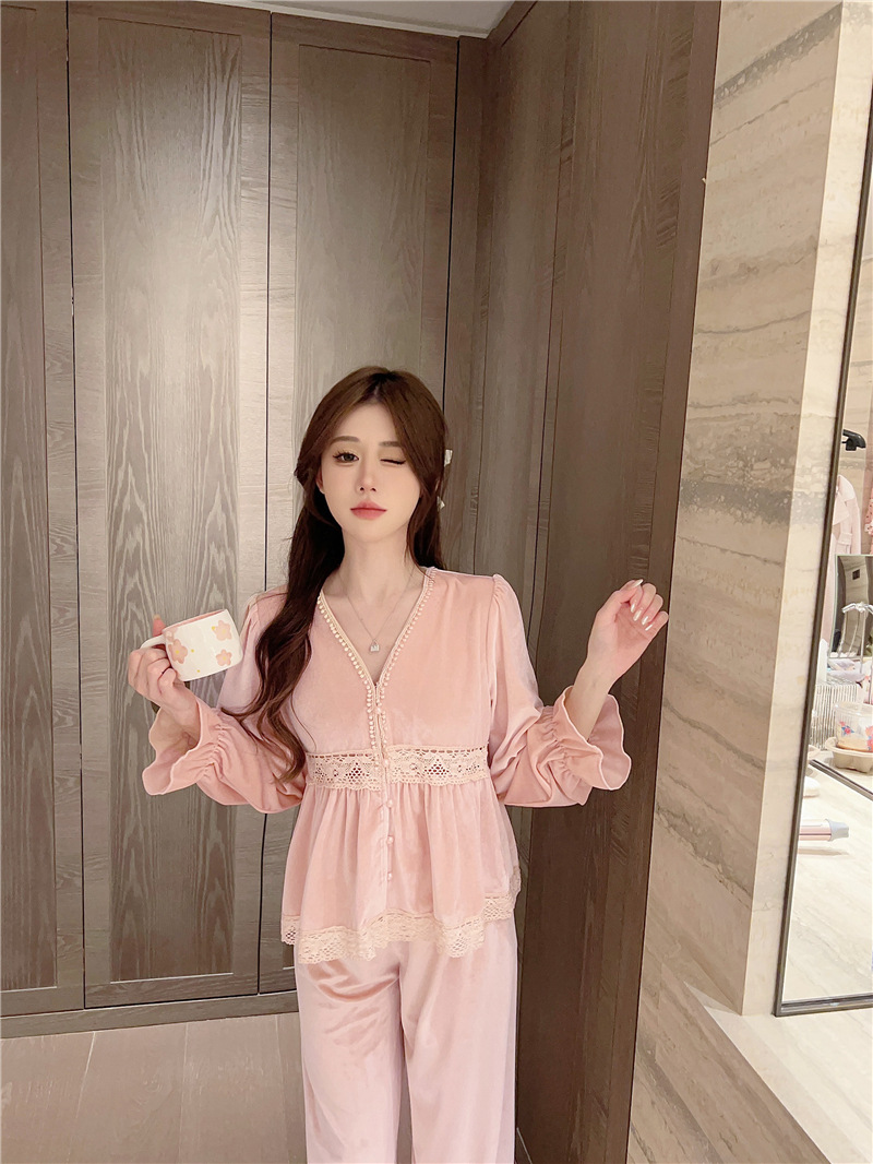잠옷 여성 가을, 겨울 새로운 한국어 벨벳 따뜻한 달콤한 귀여운 긴팔 바지 달콤한 정장 홈웨어