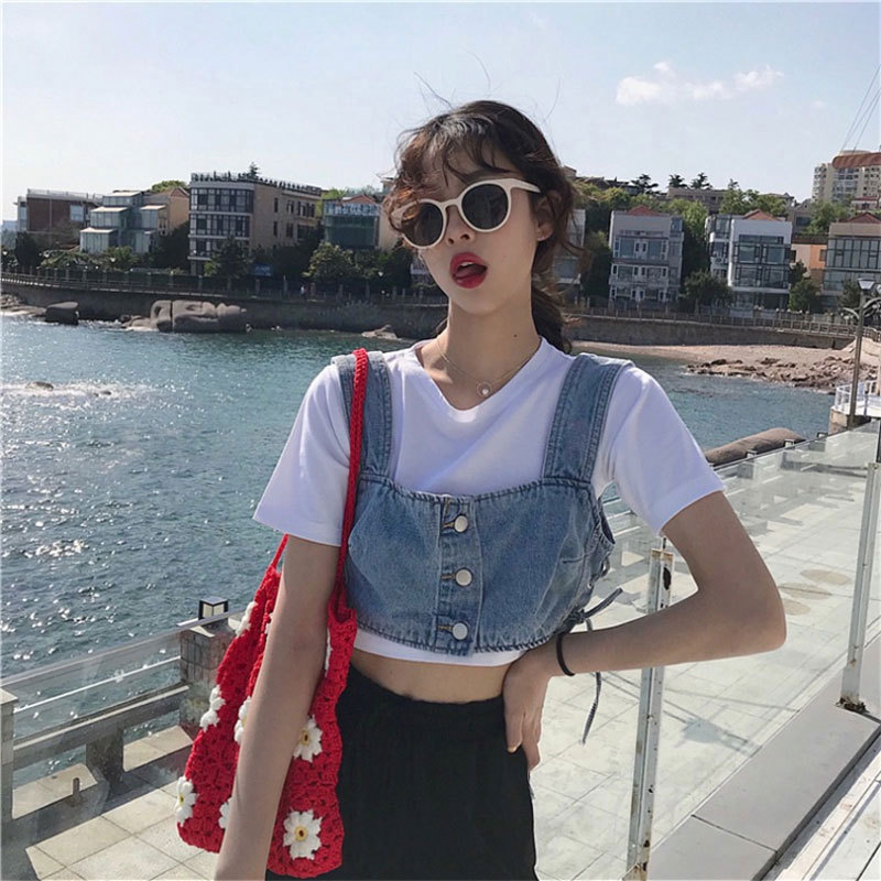 데님 조끼 여성용 겉옷 소형 슬링 슬림핏 틈새 디자인 센스 싱글 브레스트 스트랩 여성용 짧은 쌓을 수있는 탑스토어 가기