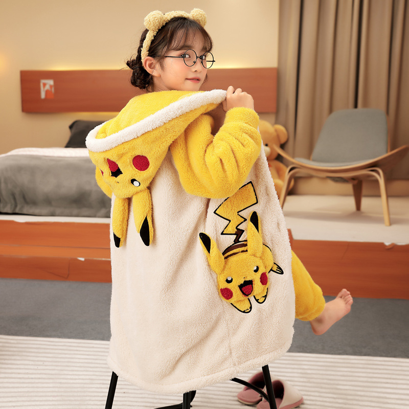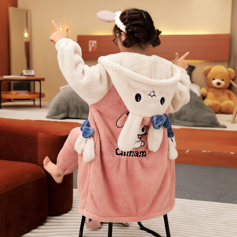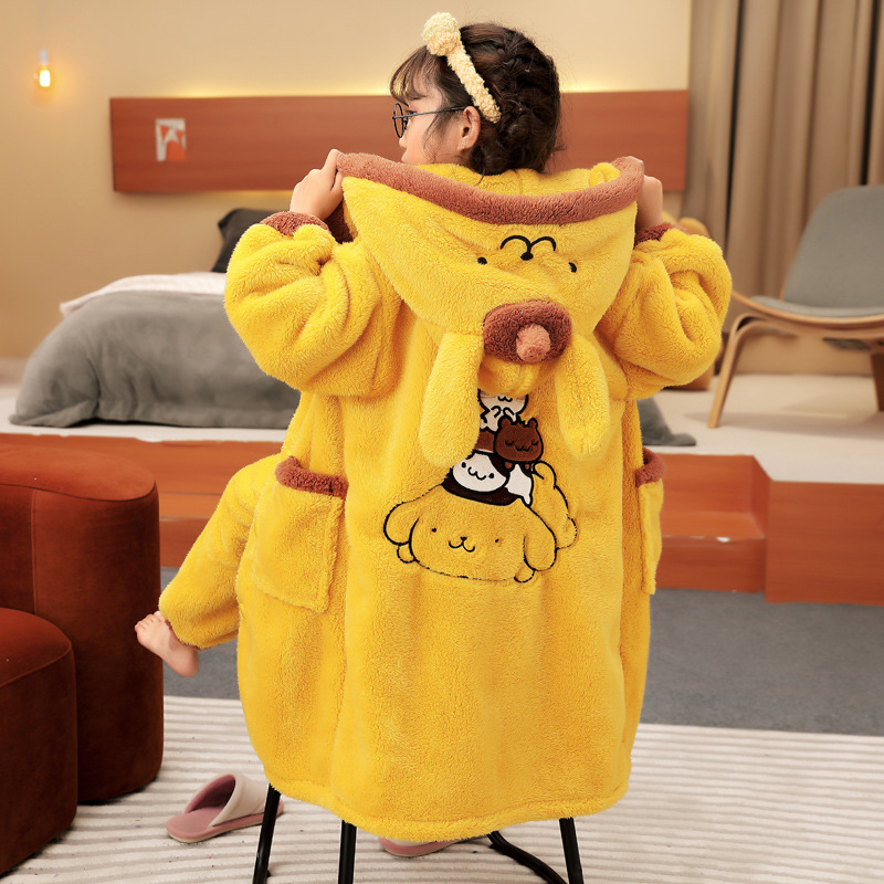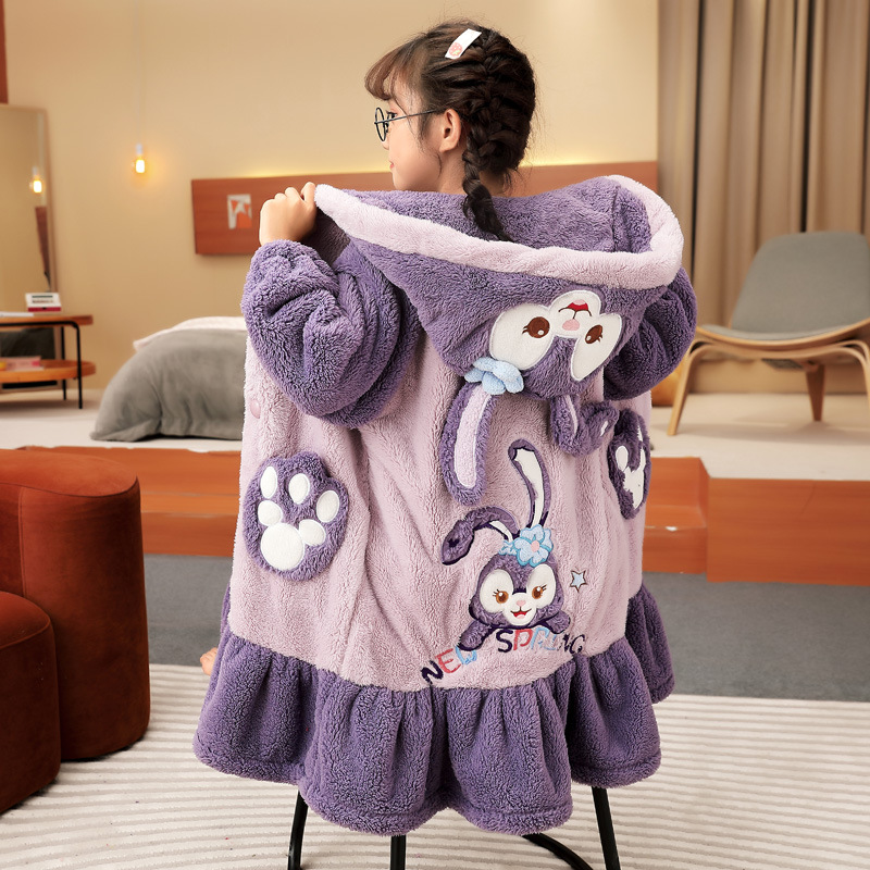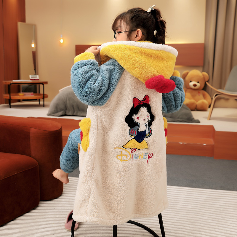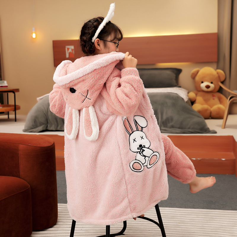산호 양털 어린이 잠옷 소녀의 아기 가을과 겨울 두꺼운 만화 플란넬 어린이 가정 옷 잠옷 여성 겨울