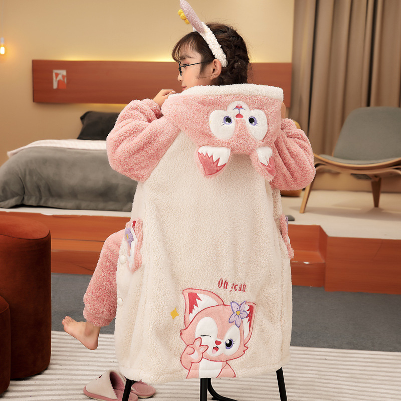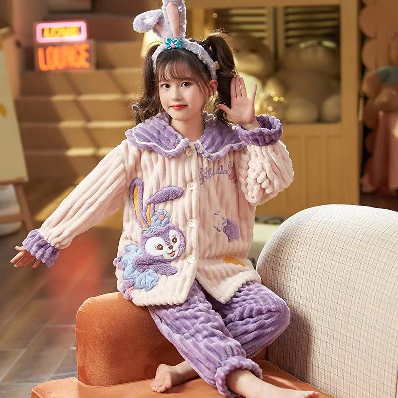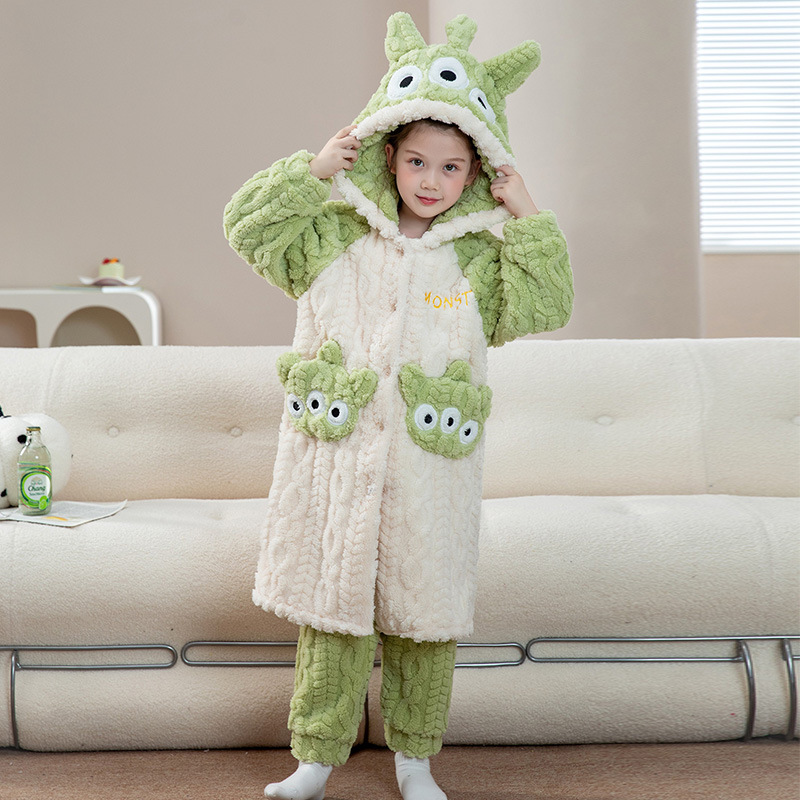 산호 양털 어린이 잠옷 소녀의 아기 가을과 겨울 두꺼운 만화 플란넬 어린이 가정 옷 잠옷 여성 겨울스토어 가기