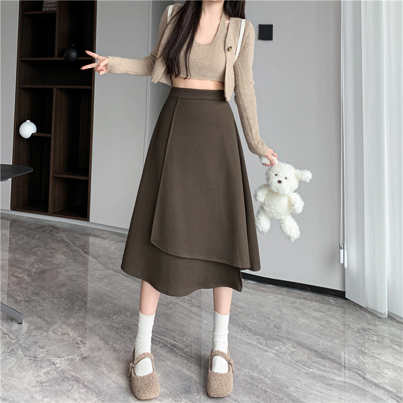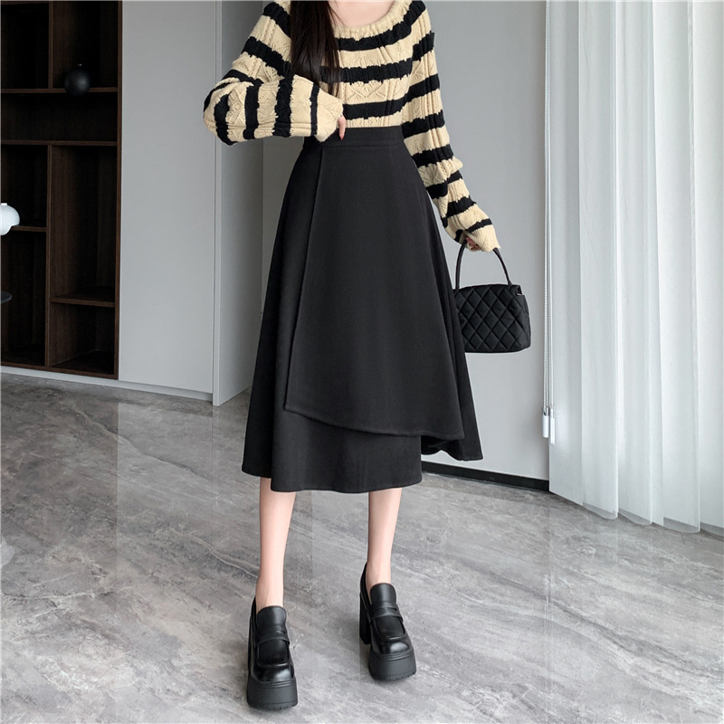 리얼 샷 불규칙한 모직 스커트 가을과 겨울 2023 새로운 배 모양의 그림 A 라인 스커트 여성용 롱 슬림 스커트스토어 가기