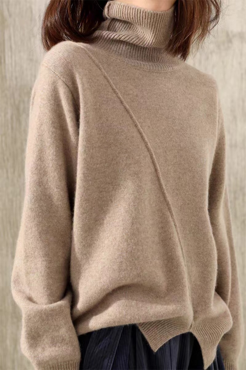가을과 겨울 새로운 터틀넥 스웨터 여성용 느슨한 두꺼운 니트 베이스 셔츠 스플릿 캐주얼 짧은 탑