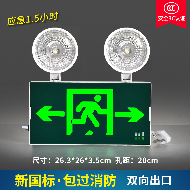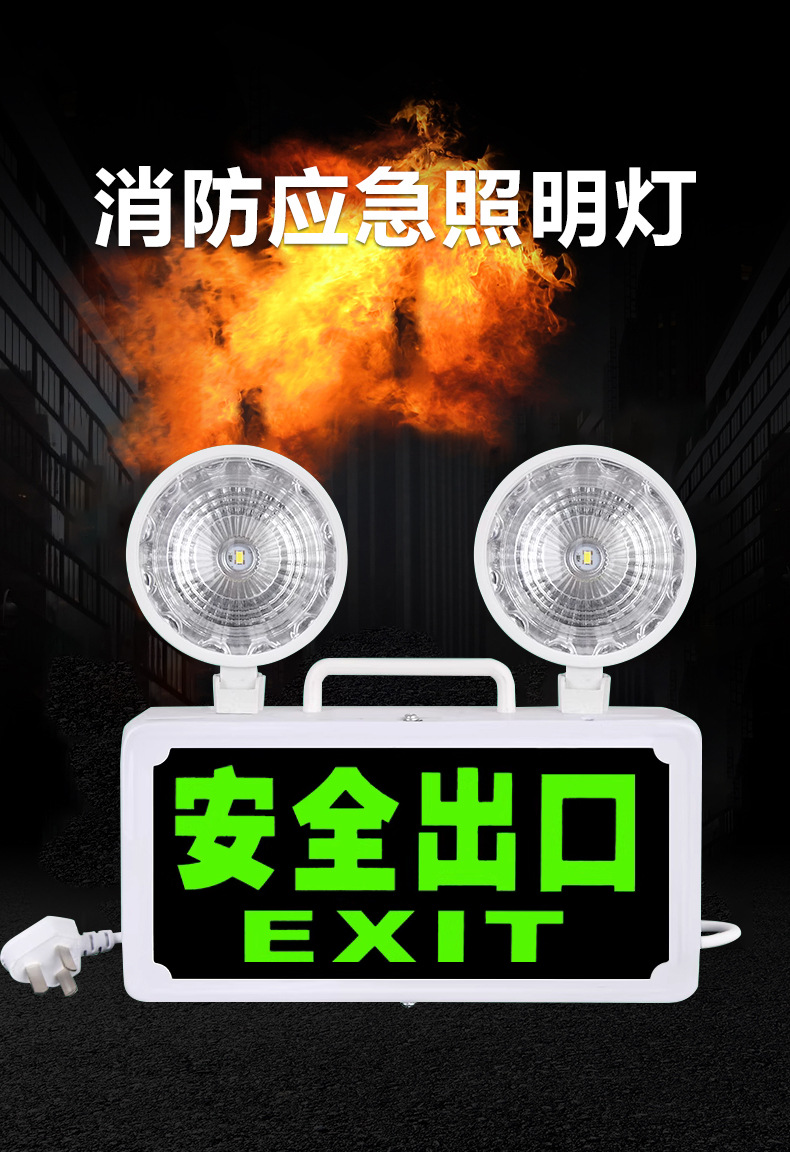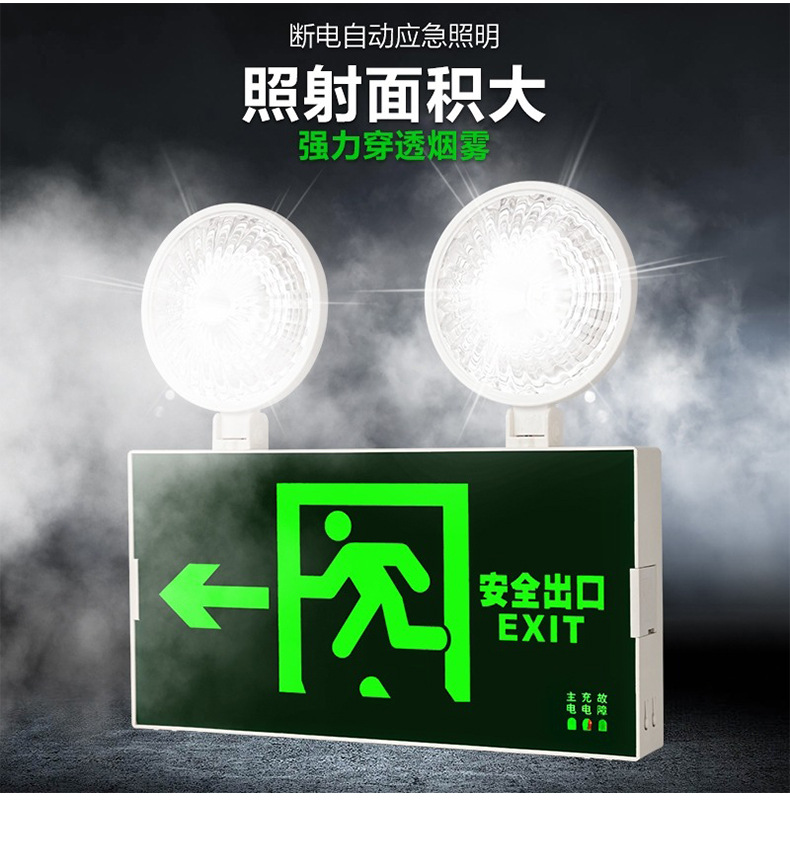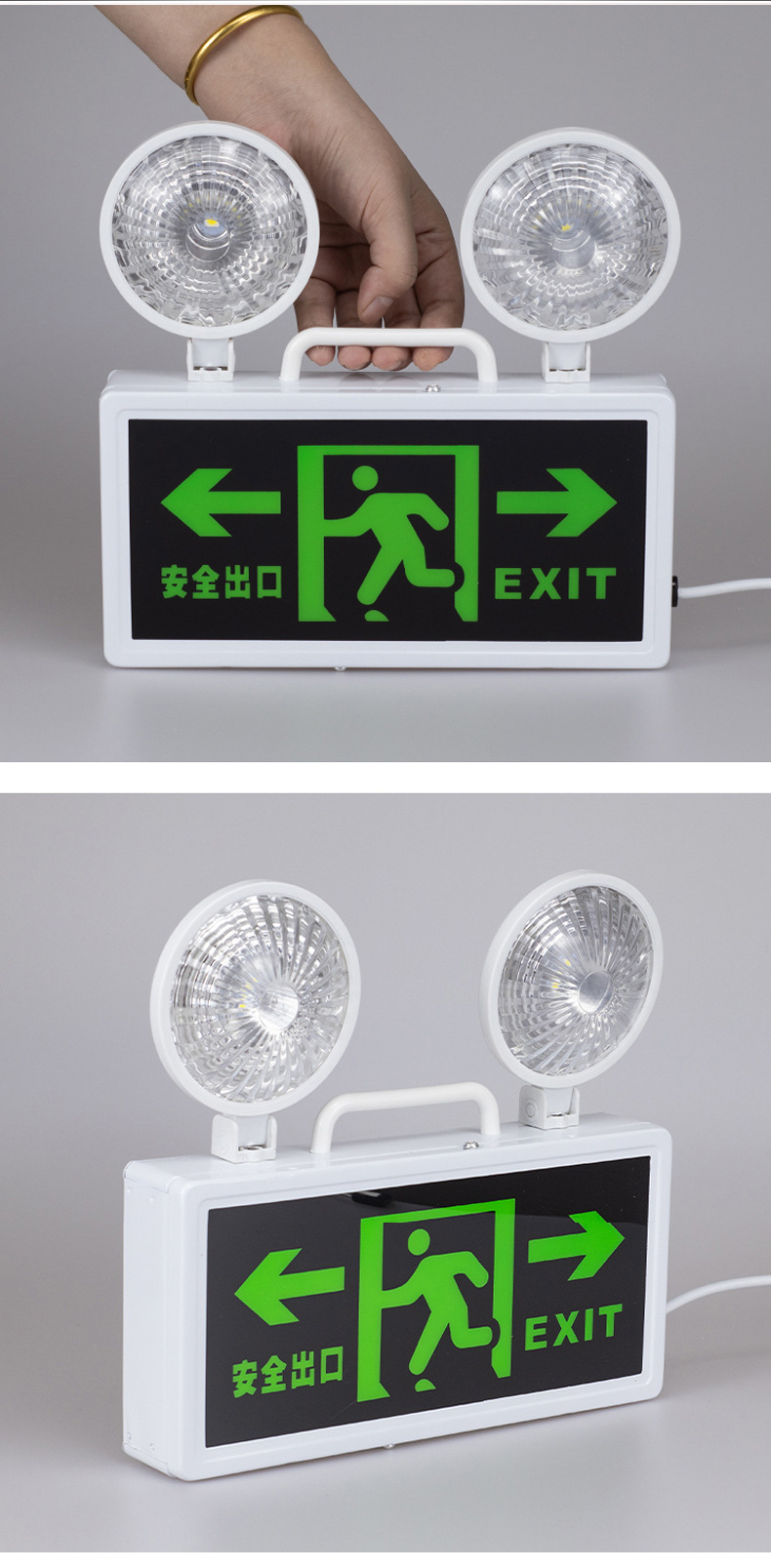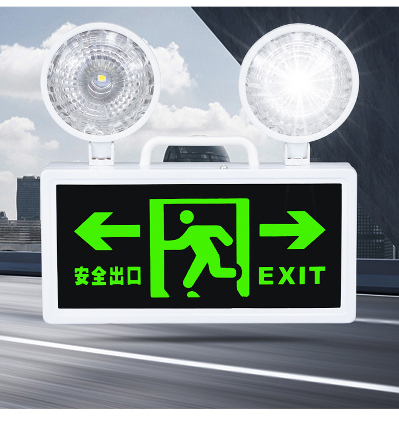 화재 비상 조명 일체형 듀얼 헤드 투인원 충전식 LED 상업용 피난 안전 출구 표시