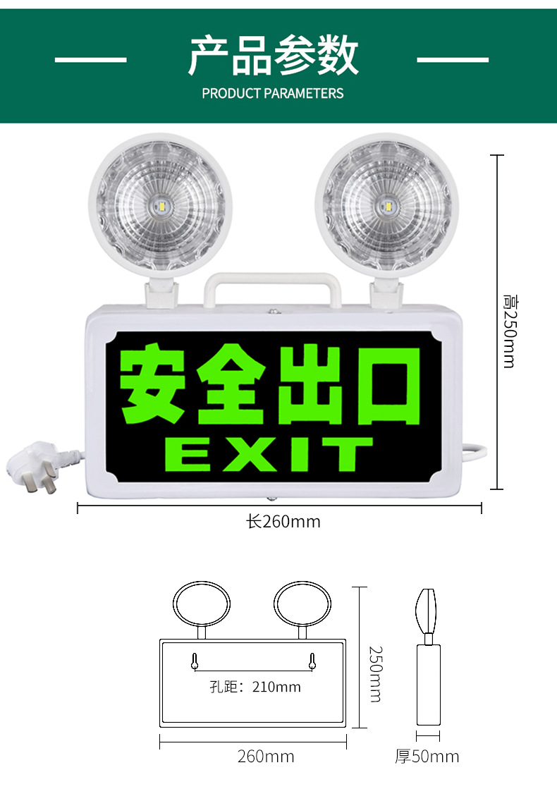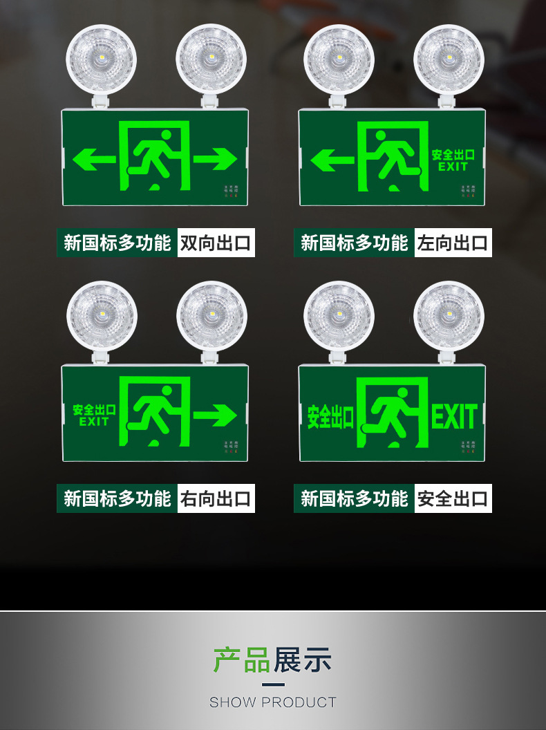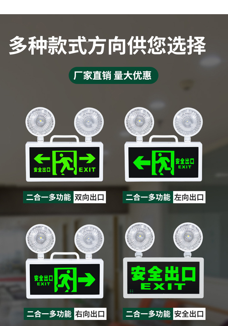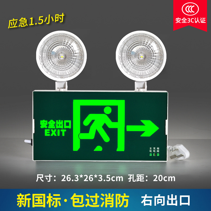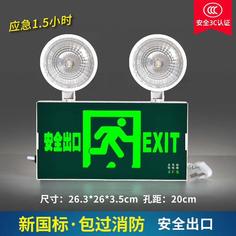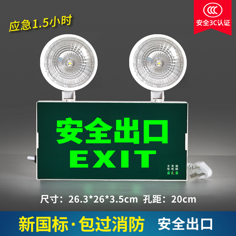 화재 비상 조명 일체형 듀얼 헤드 투인원 충전식 LED 상업용 피난 안전 출구 표시