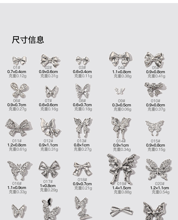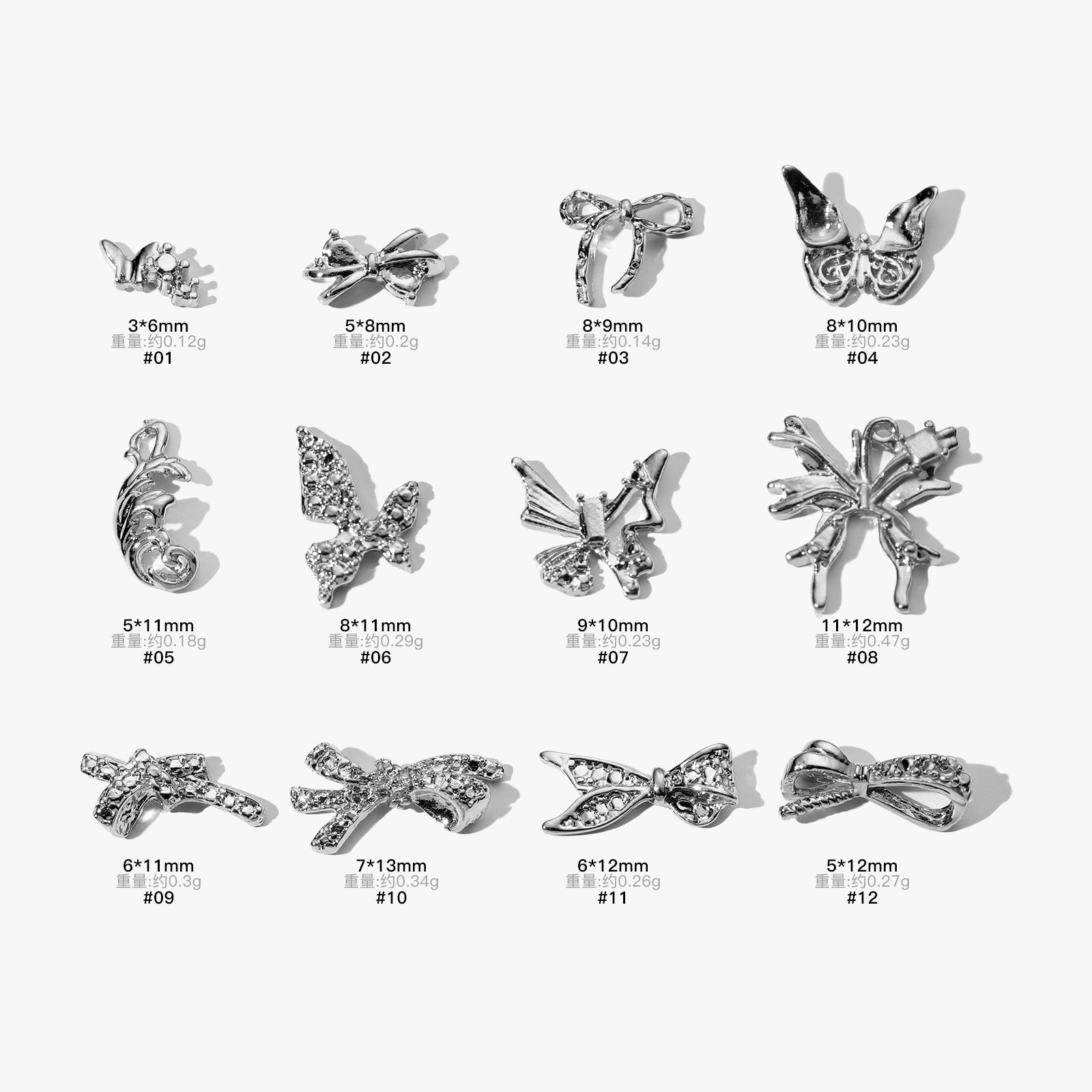 미니 나비 합금 액체 조각 활 네일 아트 쥬얼리 2025 새로운 나비 넥타이 네일 장식 다이아몬드 도매스토어 가기