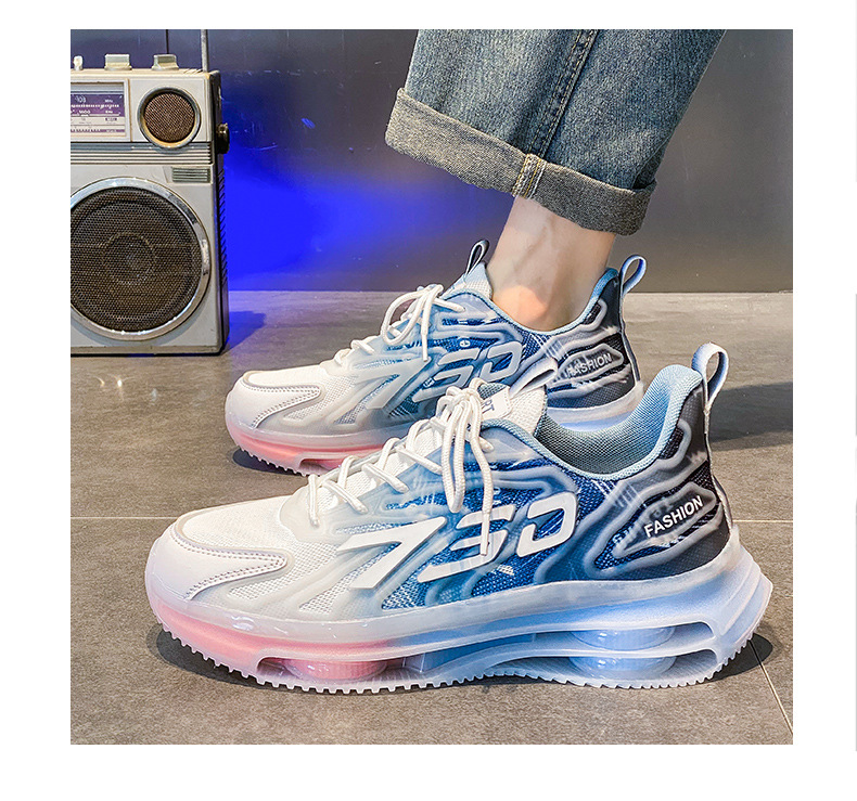 더블 에어 쿠션 개인 남성 신발 가을 새로운 스포츠 캐주얼 러닝화 플라이 짠 메쉬 표면 통기성 충격 흡수 아빠 트렌디 신발스토어 가기