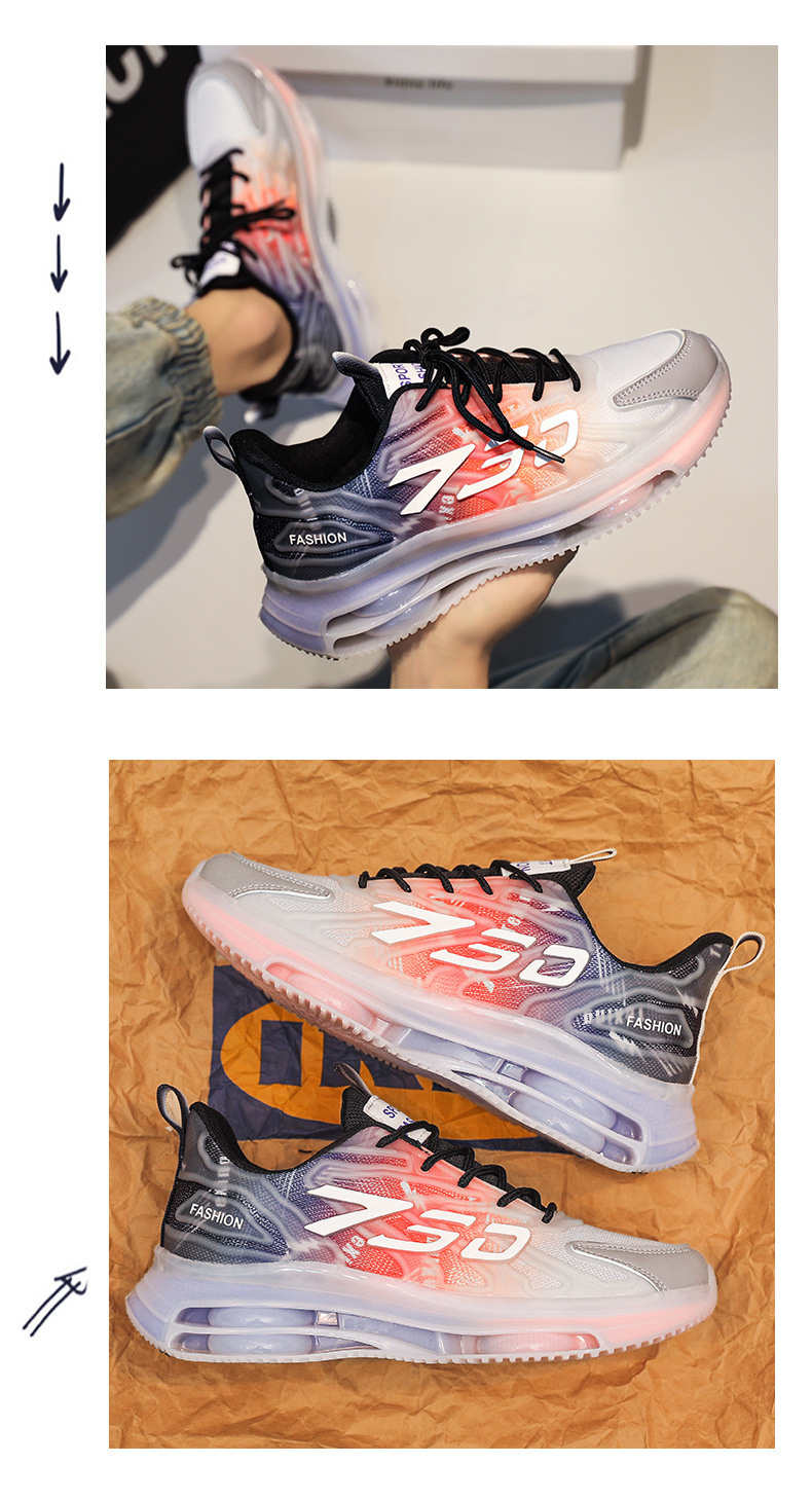 더블 에어 쿠션 개인 남성 신발 가을 새로운 스포츠 캐주얼 러닝화 플라이 짠 메쉬 표면 통기성 충격 흡수 아빠 트렌디 신발
