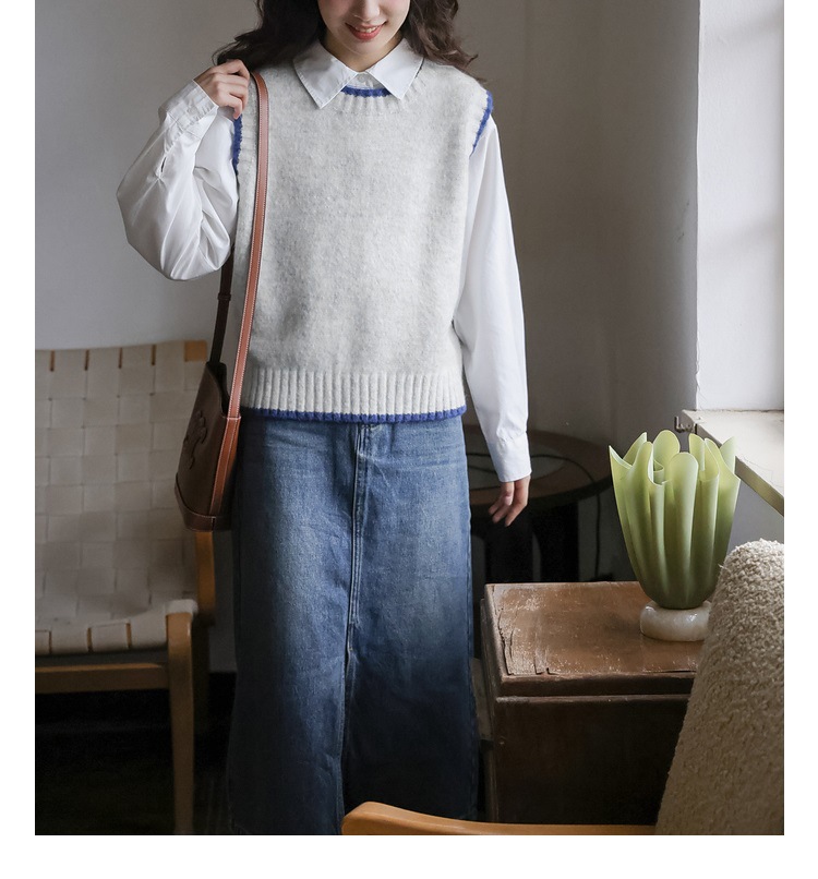 블루 스노우 마운틴/북유럽 스타일 그레이 스웨터 조끼 가을 여자의 복고풍 니트웨어 스택 조끼 최고 새로운 스타일스토어 가기