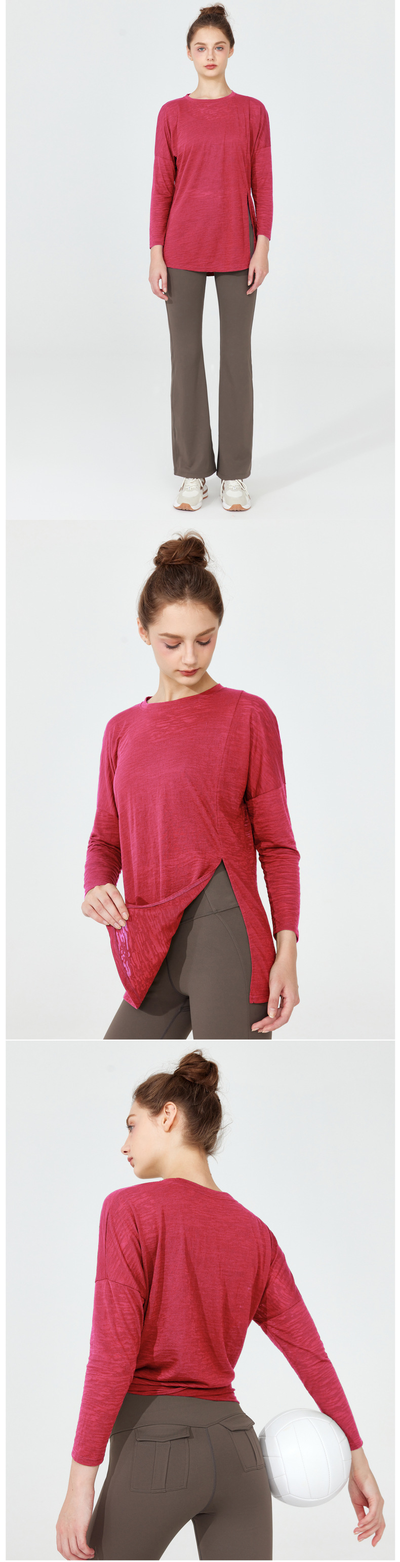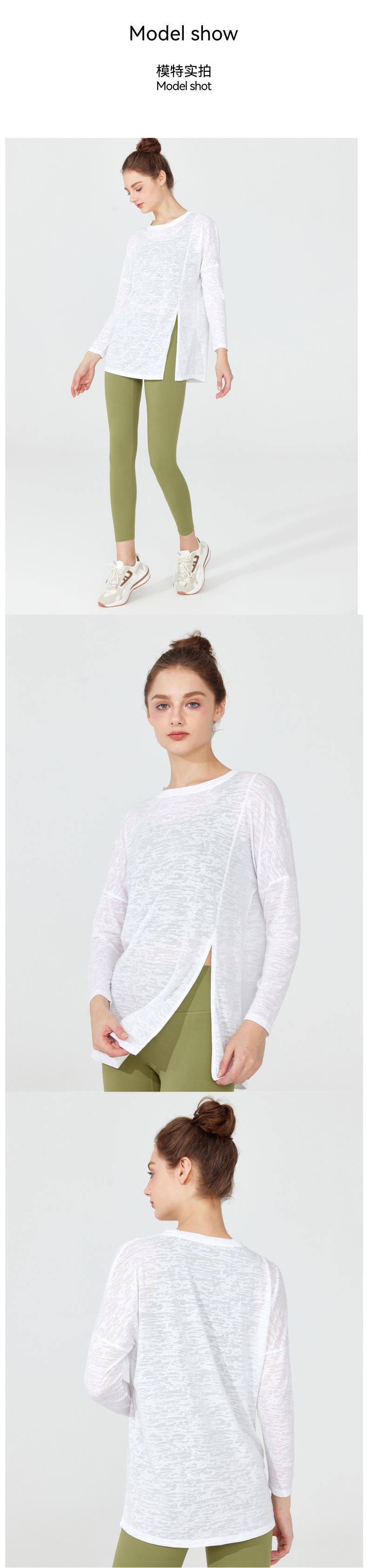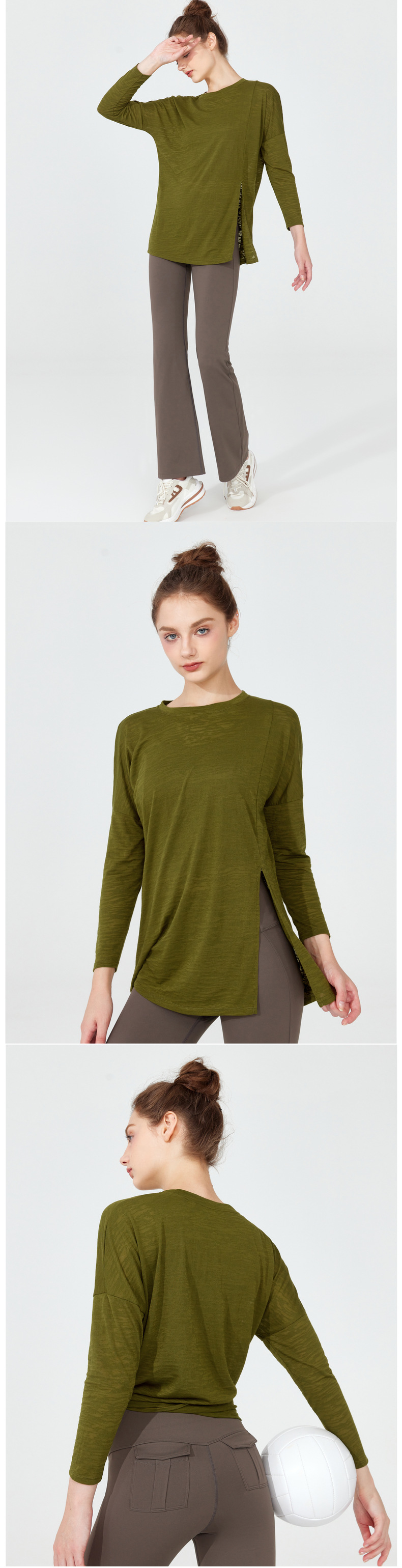 크로스보더 신상 요가복 긴팔 런닝탑 여성 트레이닝 스포츠웨어 슬릿 통기성 루즈핏 피트니스웨어