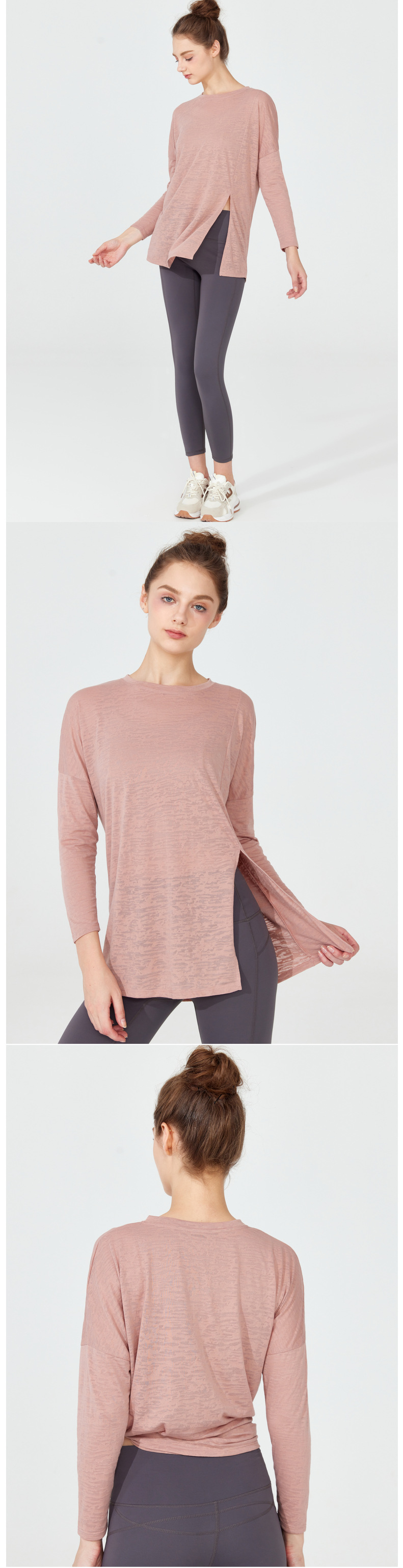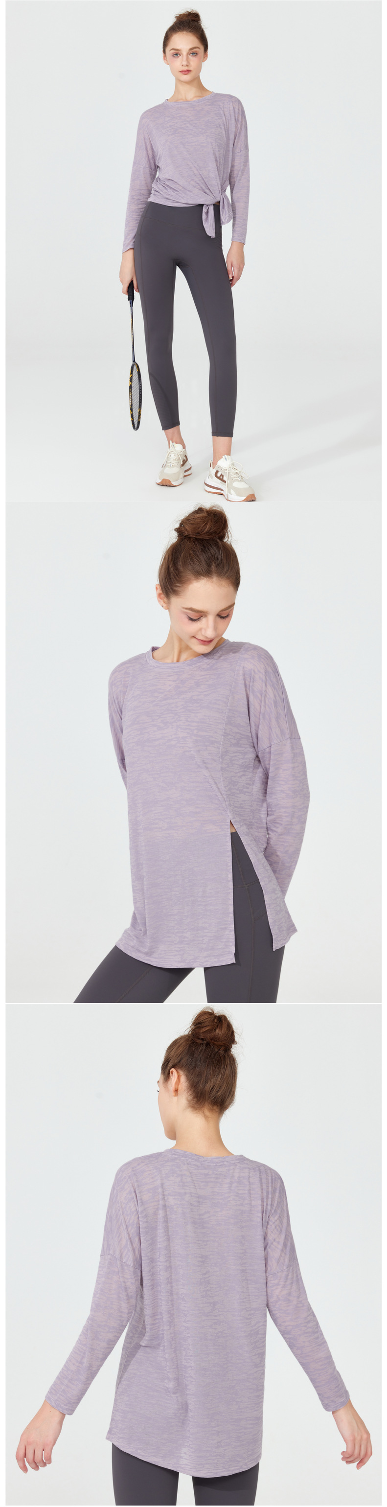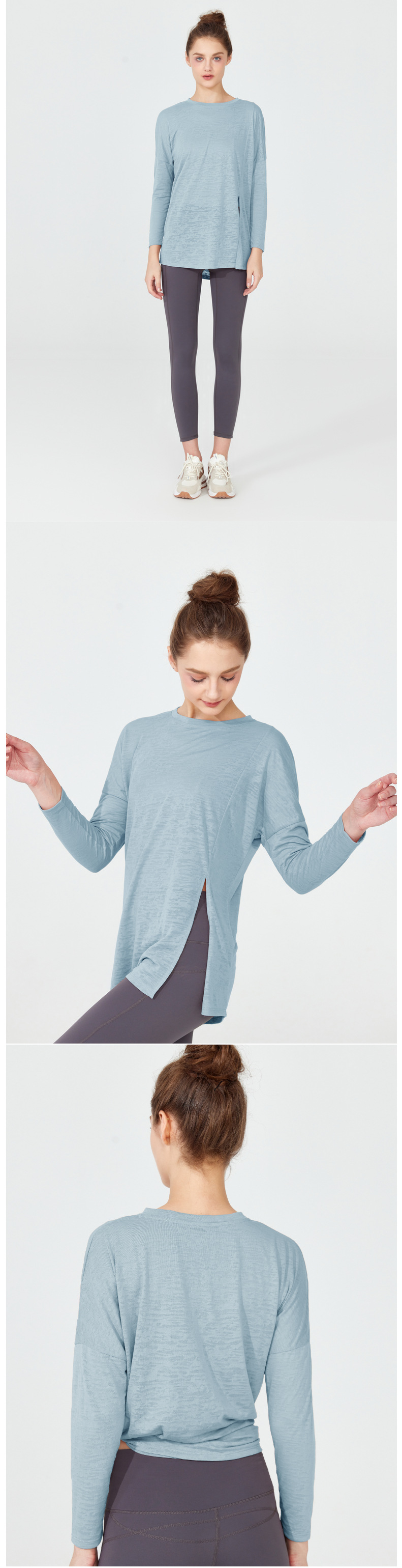 크로스보더 신상 요가복 긴팔 런닝탑 여성 트레이닝 스포츠웨어 슬릿 통기성 루즈핏 피트니스웨어