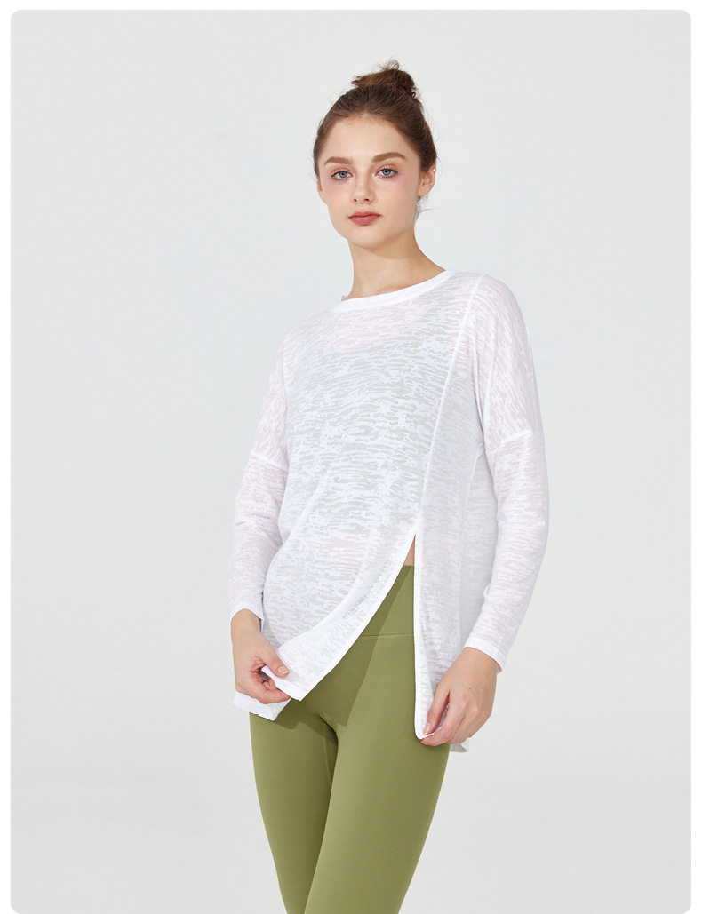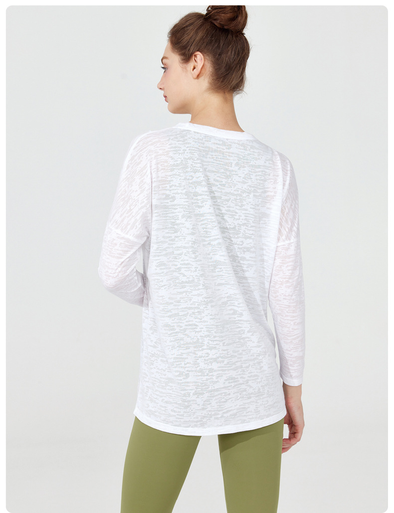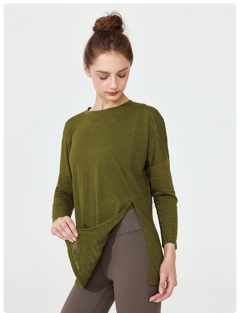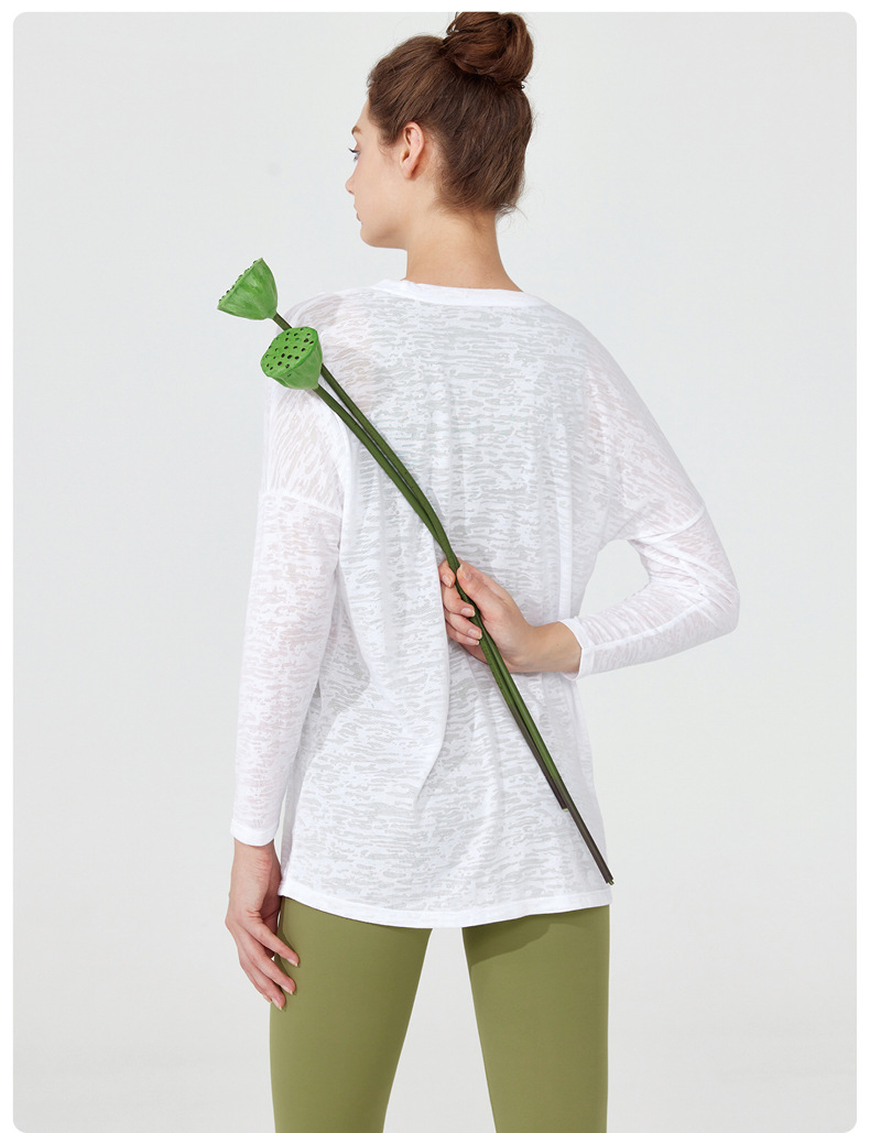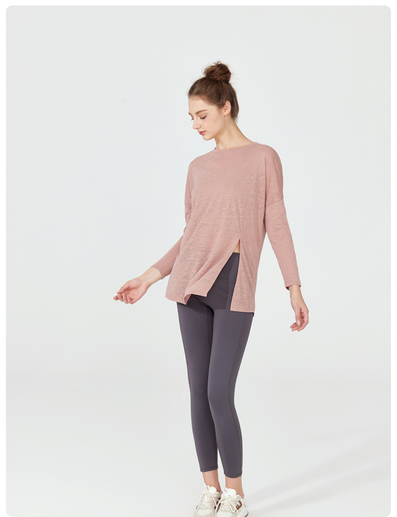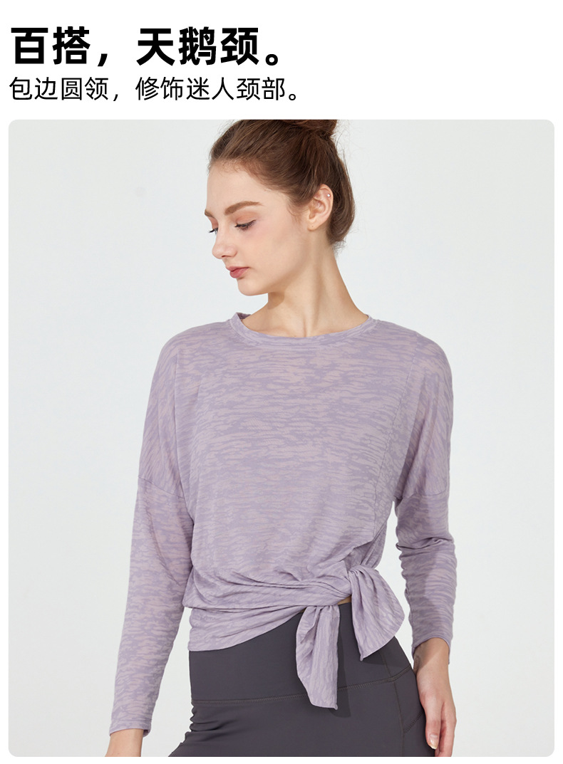 봄과 가을 새로운 요가복 긴팔 블라우스 러닝 탑 여성 트레이닝 스포츠웨어 통풍구 통기성 느슨한 피트니스 의류