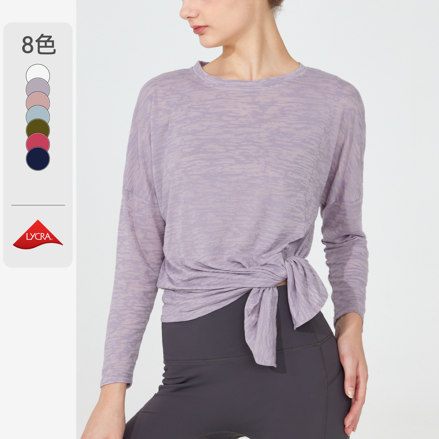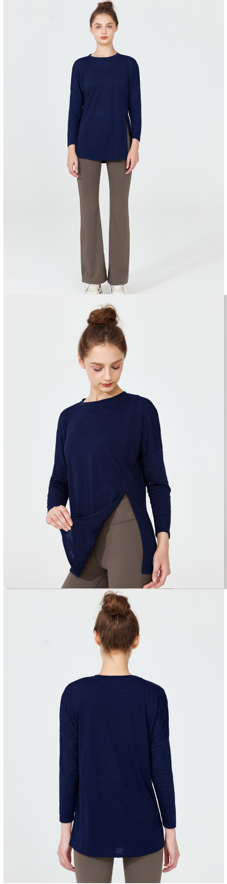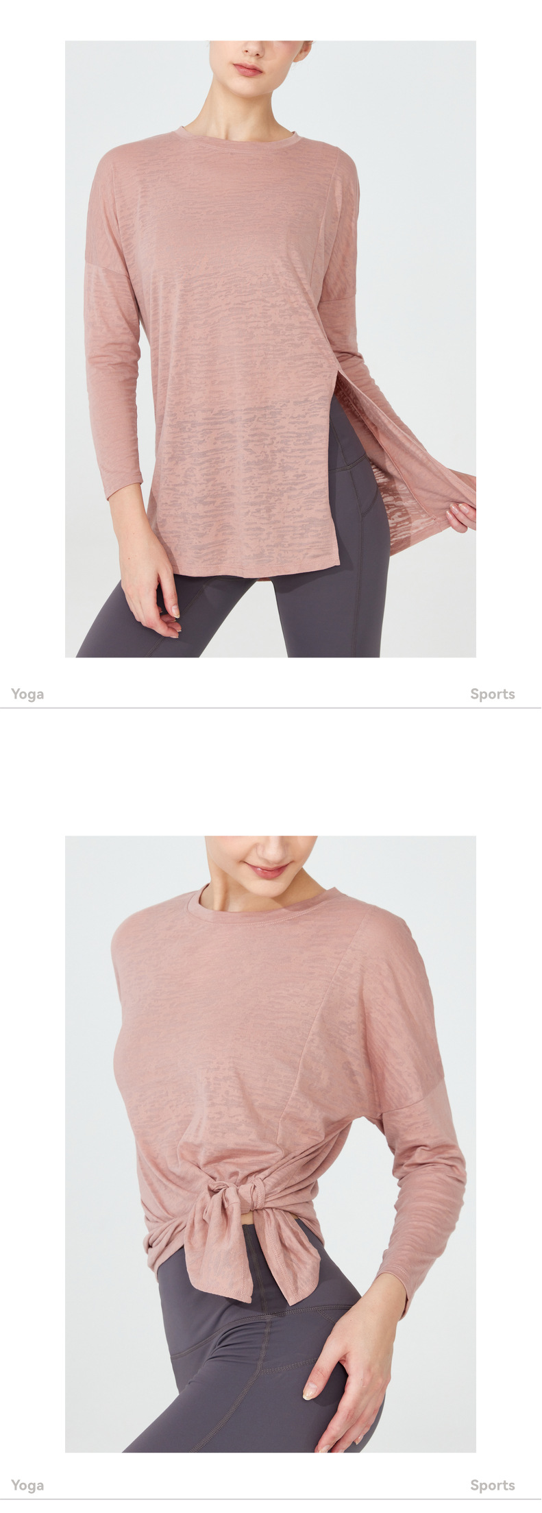 크로스보더 신상 요가복 긴팔 런닝탑 여성 트레이닝 스포츠웨어 슬릿 통기성 루즈핏 피트니스웨어스토어 가기