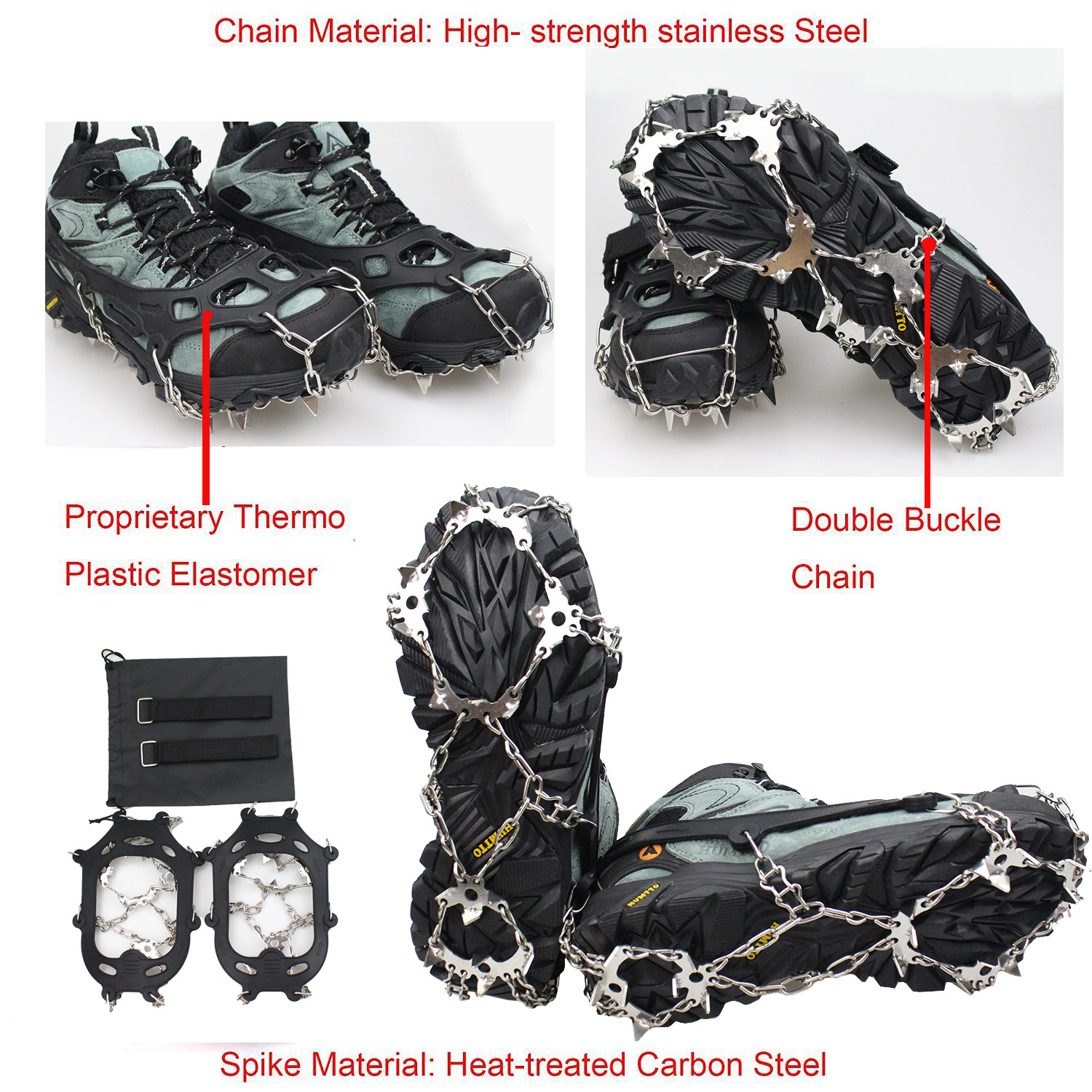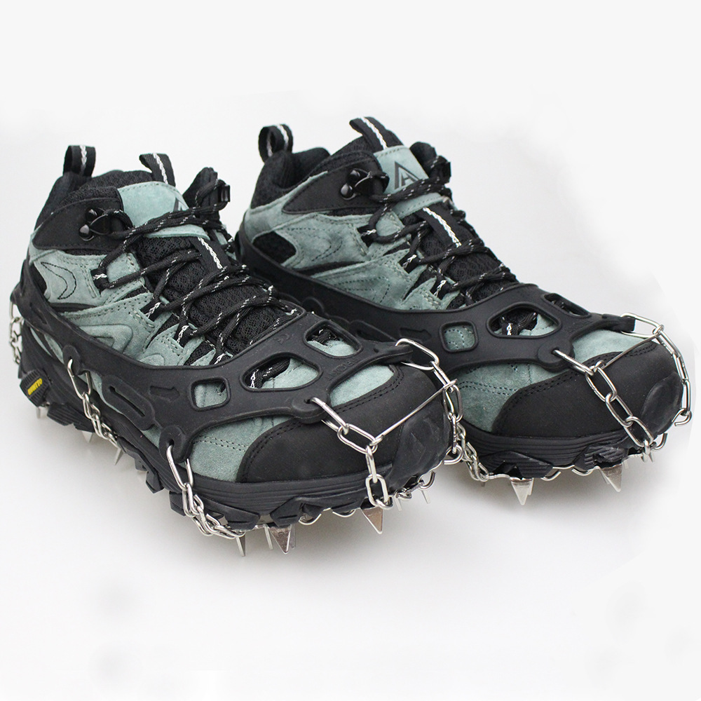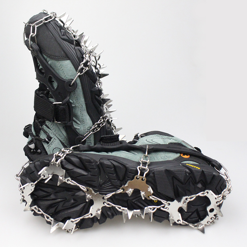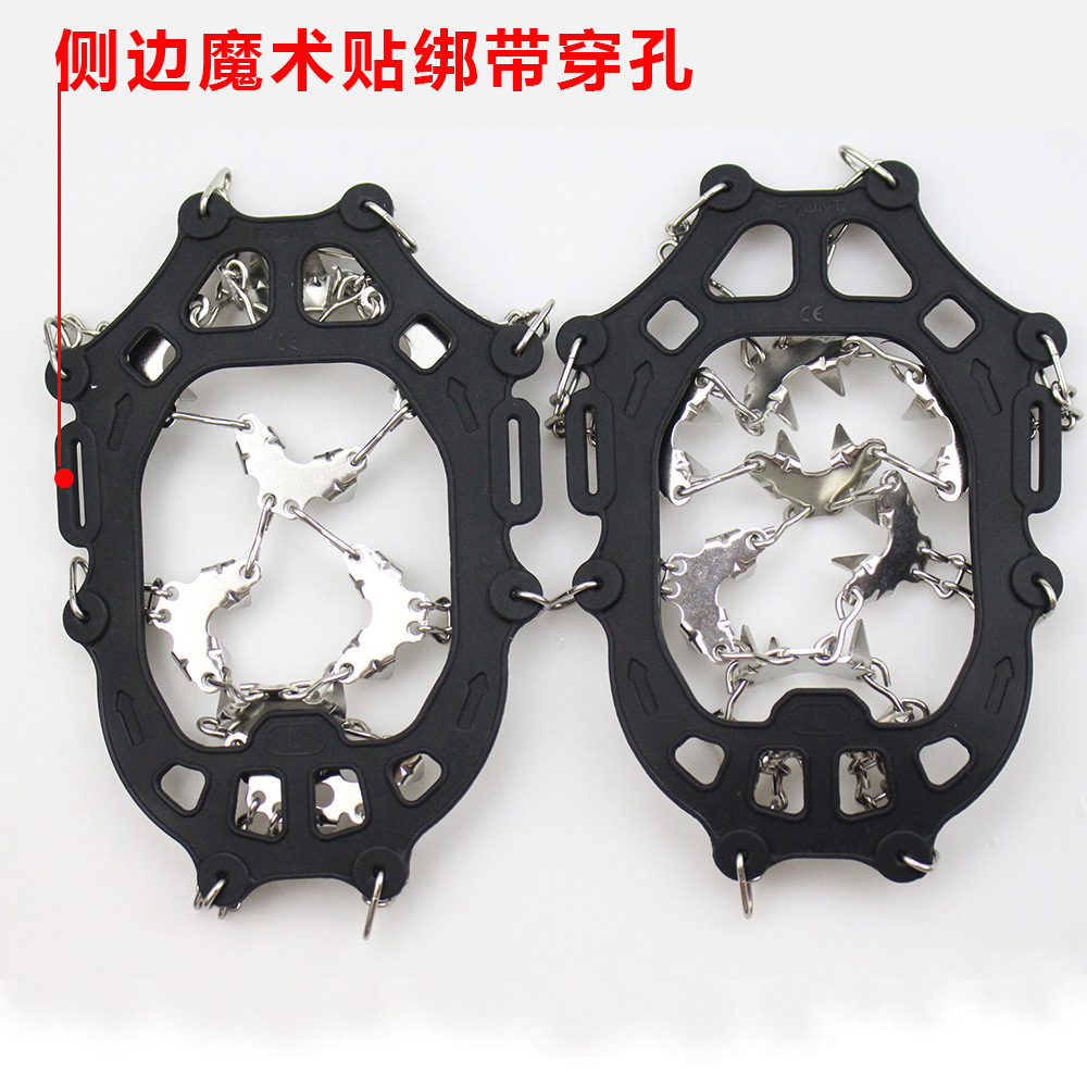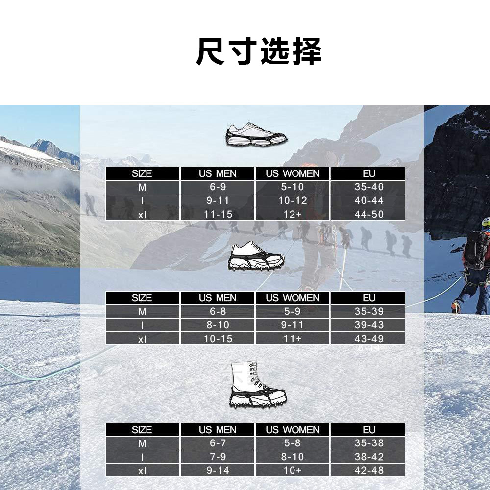产品特点:硅胶弹性体拉伸性能强抗寒度为-40,防滑耐磨,结实耐用,使用方便,可配合各种平底鞋,运动鞋,登山鞋,高山靴等,适合冰雪季节户外登山穿越,冰钓,冰雪地/湿滑地高.