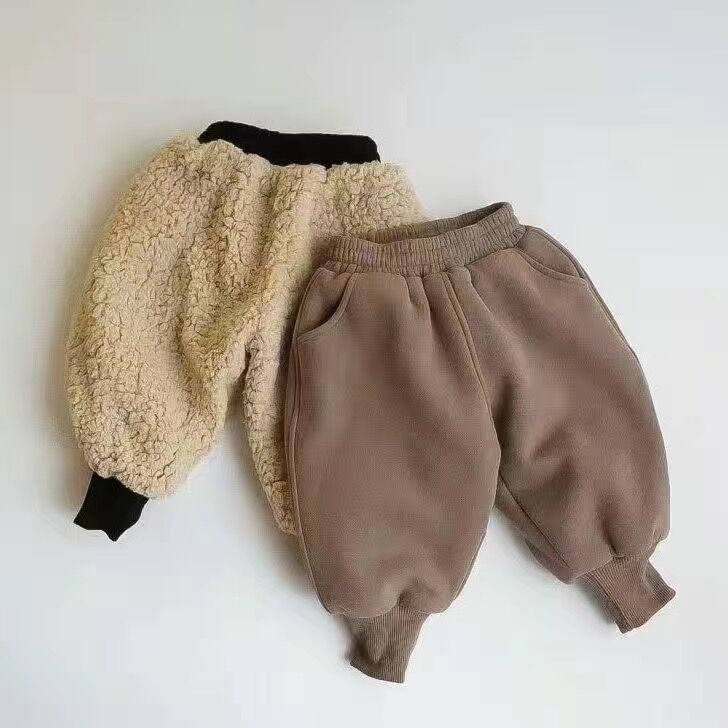 겨울 ~ 두꺼운 양고기 벨벳 어린이 겨울 한국어 버전 하렘 바지 2022 새로운 소년 소녀 캐시미어 바지스토어 가기