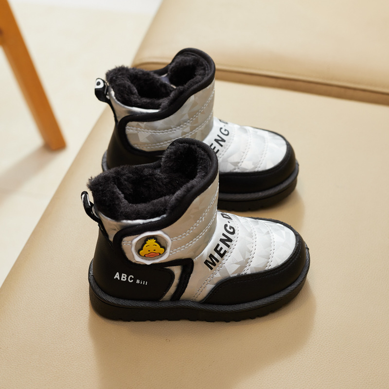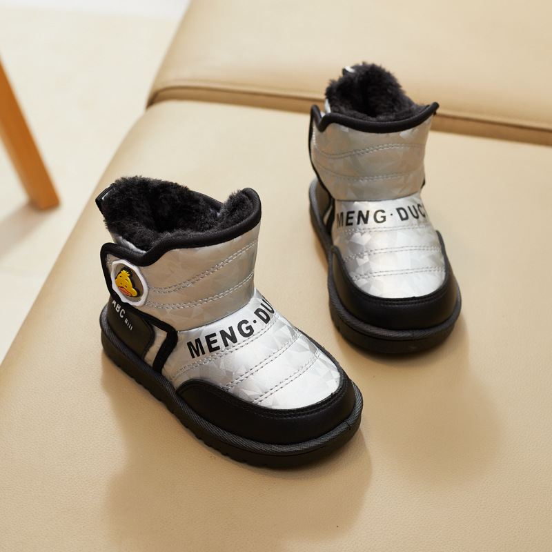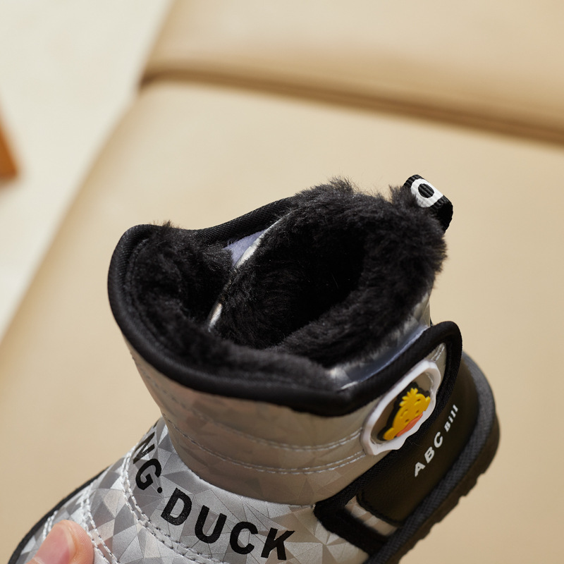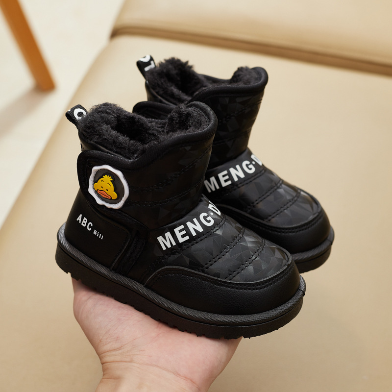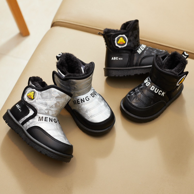 작은 노란 오리 어린이 스노우 부츠 겨울 방수 미끄럼 방지 눈 면 소년 두꺼운 면 신발 기모 따뜻한 여성 신발