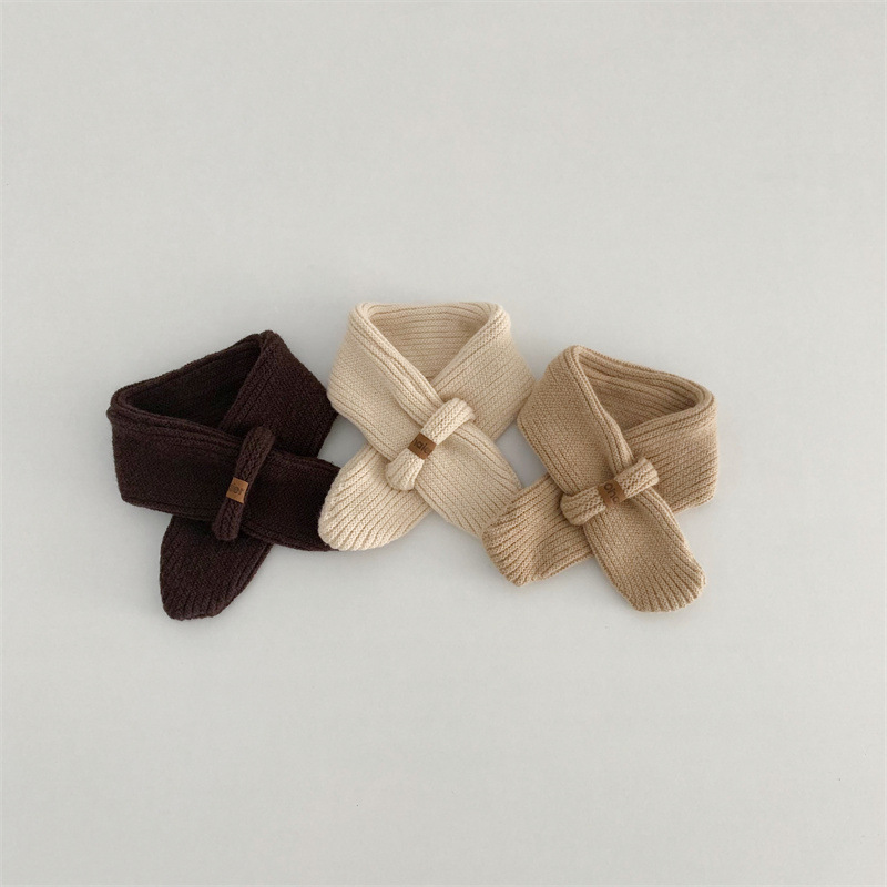 In 아기 니트 스카프 간단한 모든 경기 소년 소녀 겨울 야외 방풍 따뜻한 단색 크로스 스카프