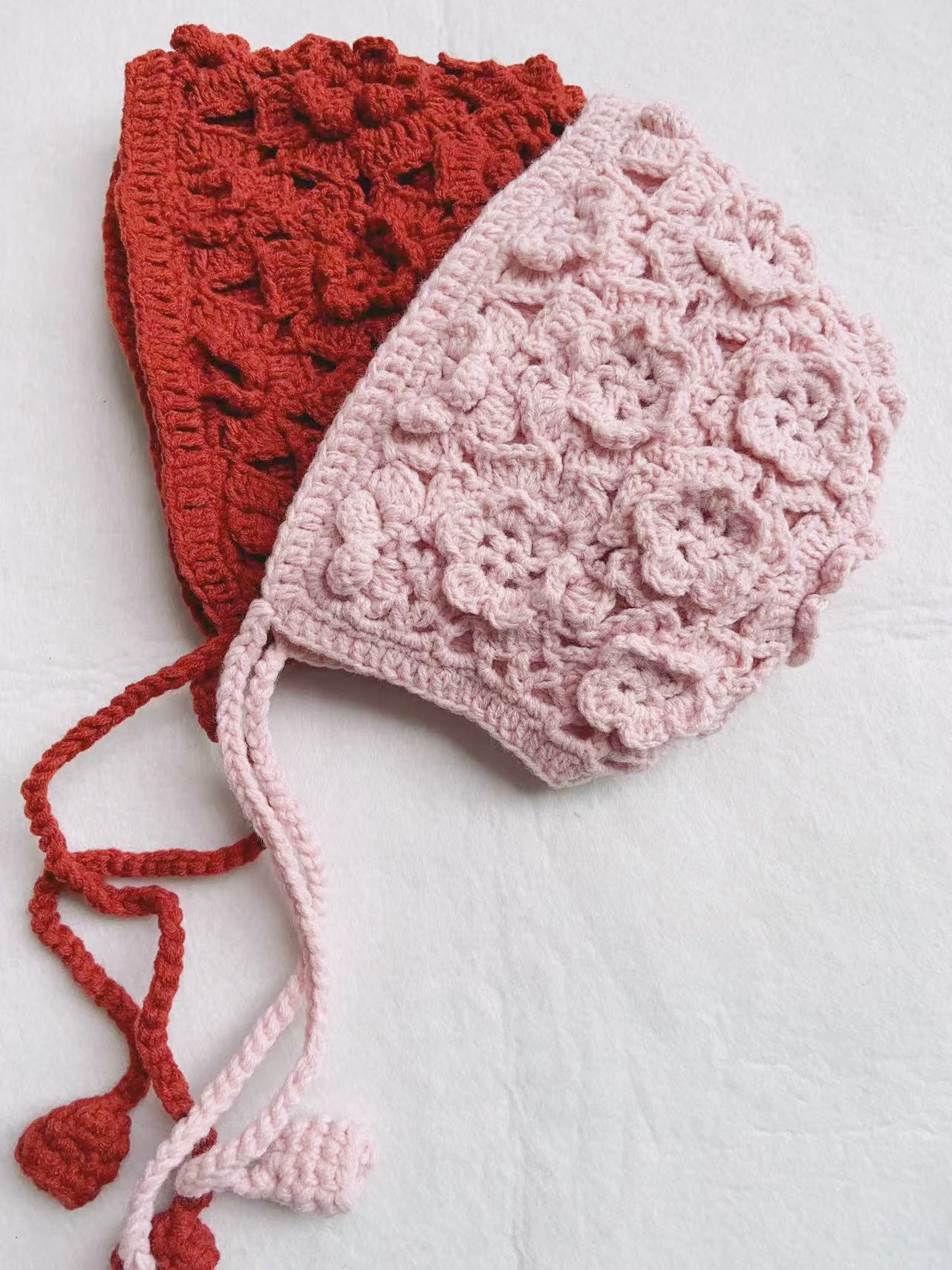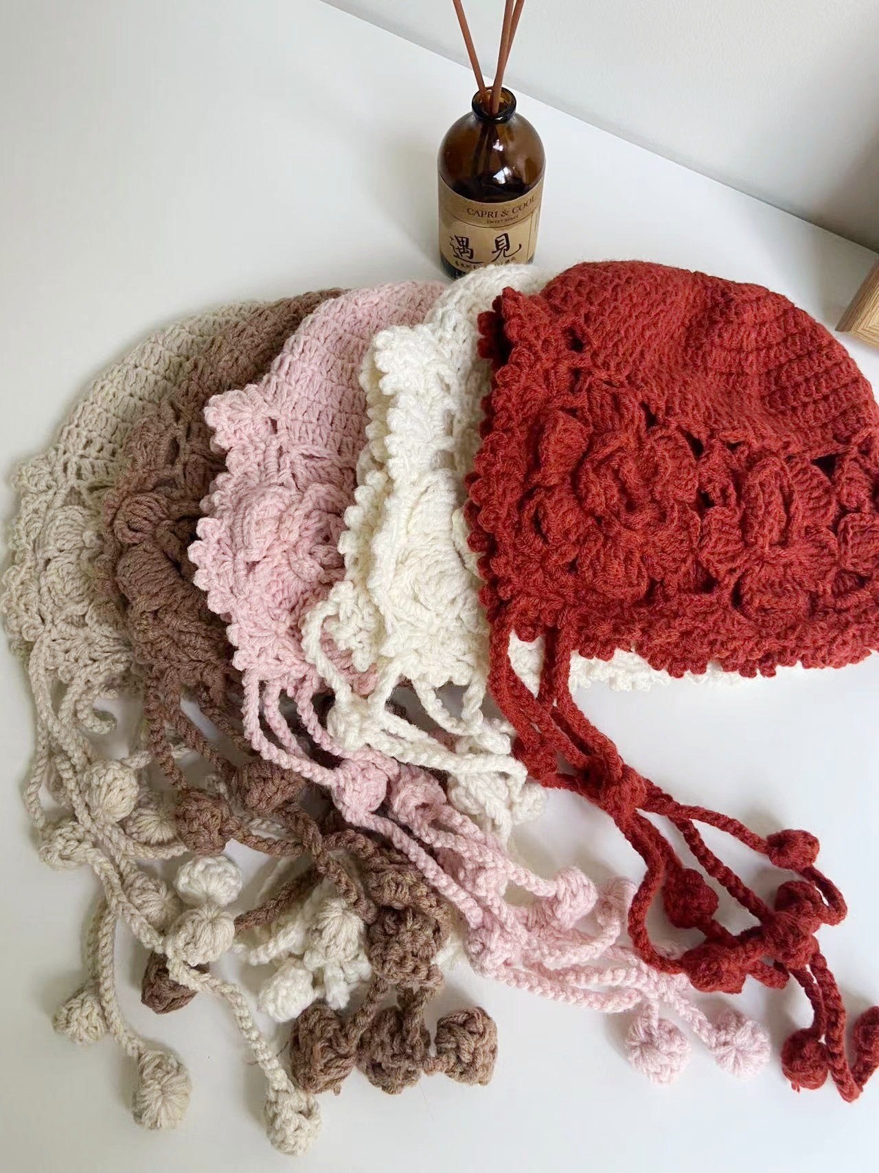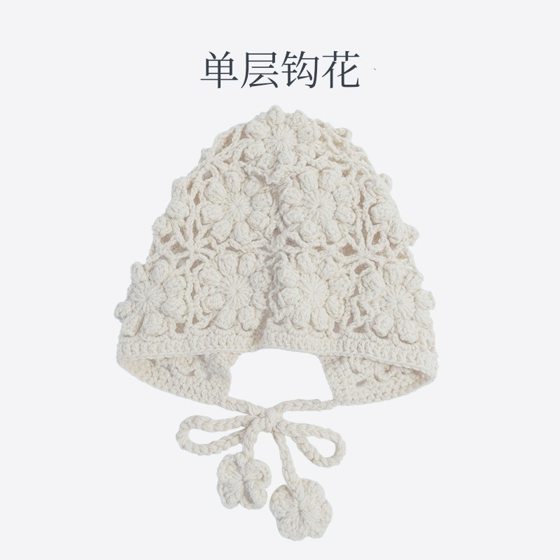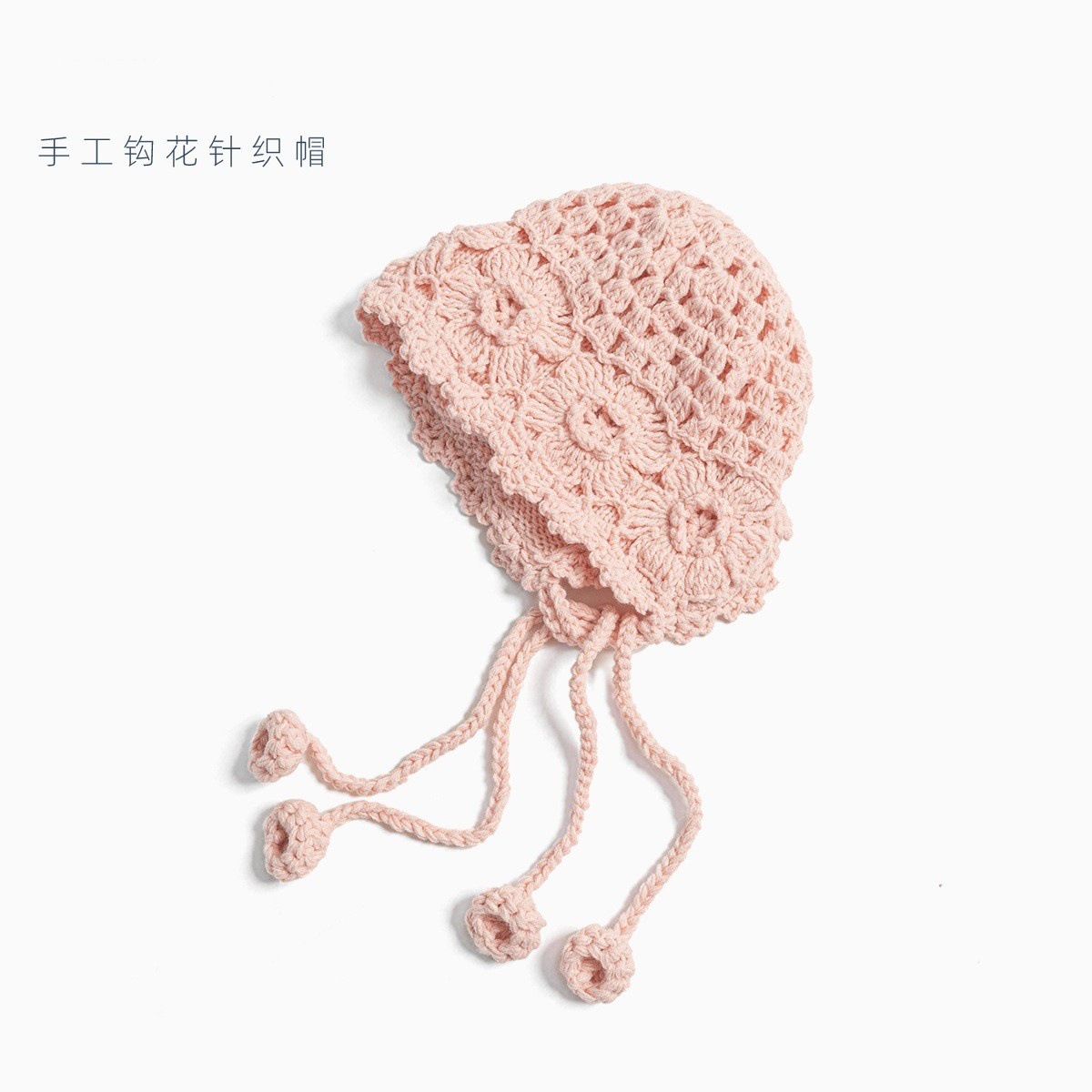 2024 새로운 어린이 모자 가을, 겨울 중공 꽃 양모 모자 소녀 니트 귀 보호 모자 아기 소녀 풀오버 모자