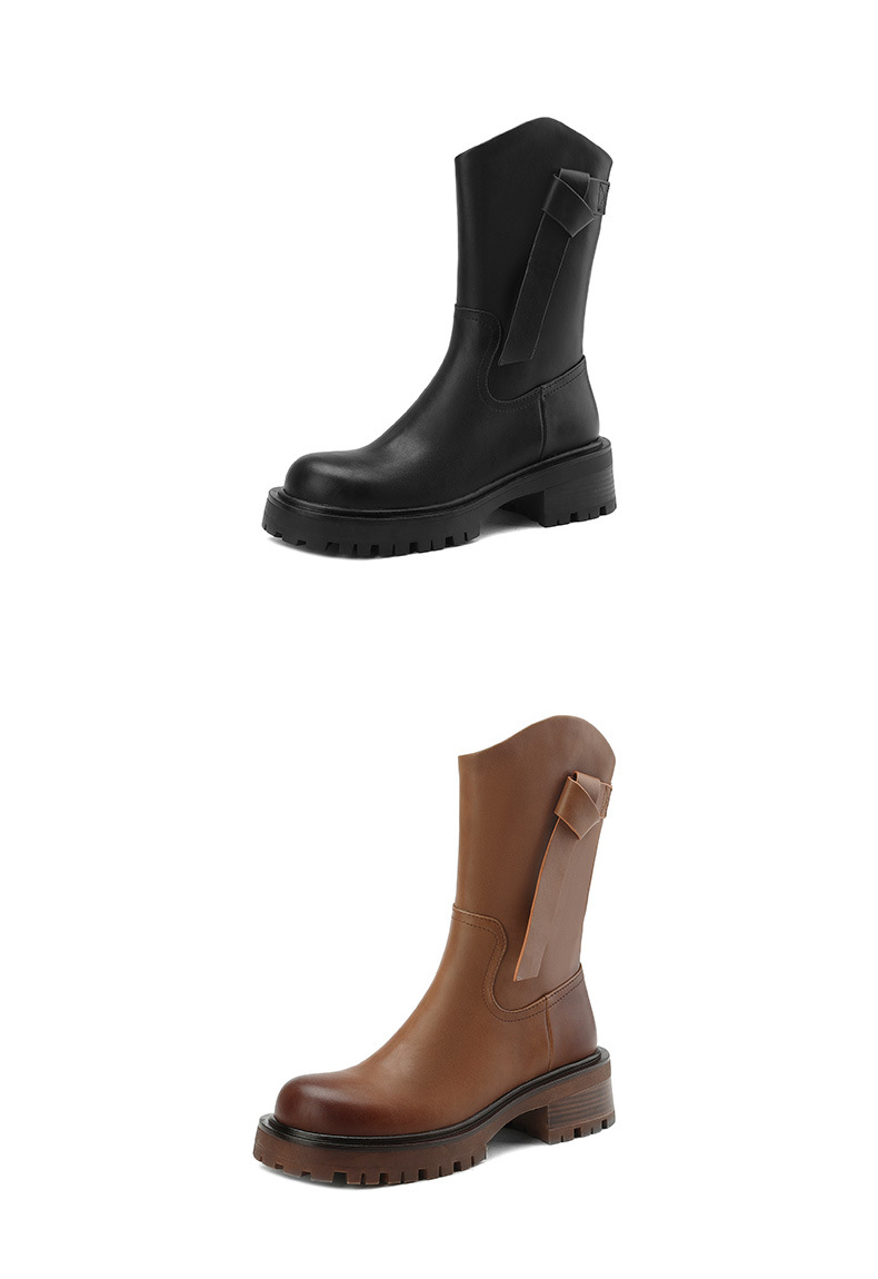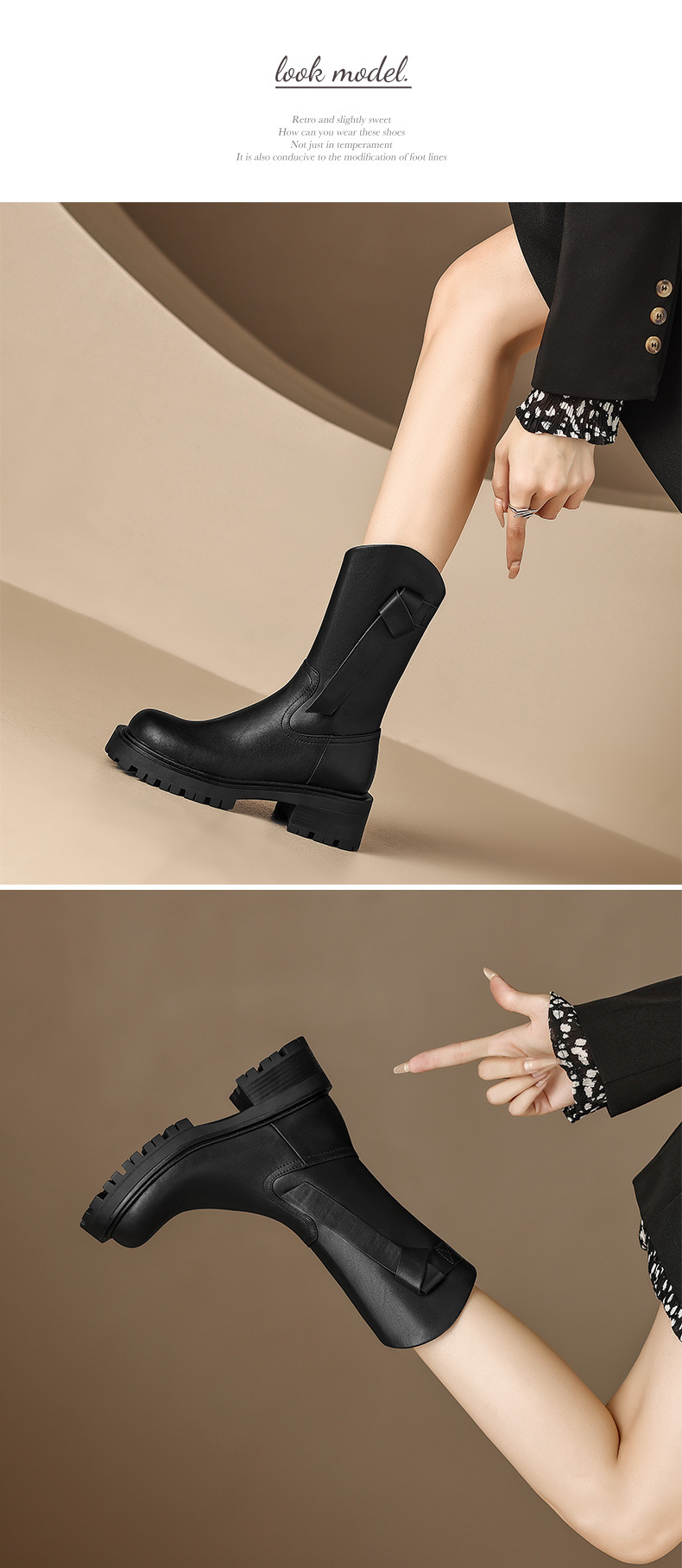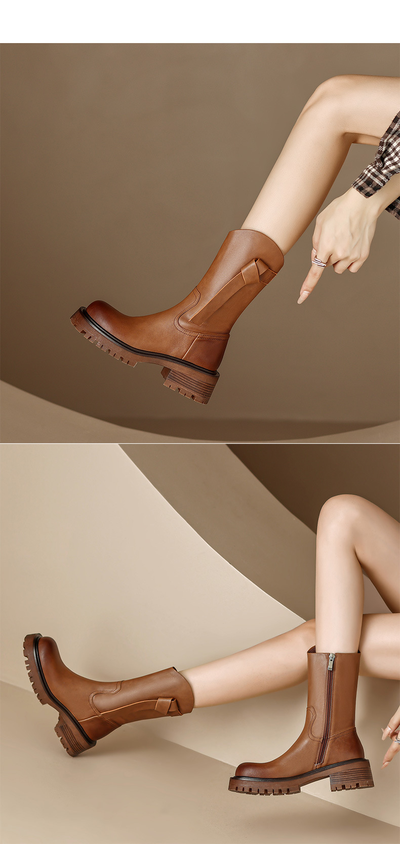 영국식 두꺼운 밑창 마틴 부츠 여성용 정품 가죽 둥근 발가락 짧은 부츠 세련된 술 웨스턴 중간 길이 부츠
