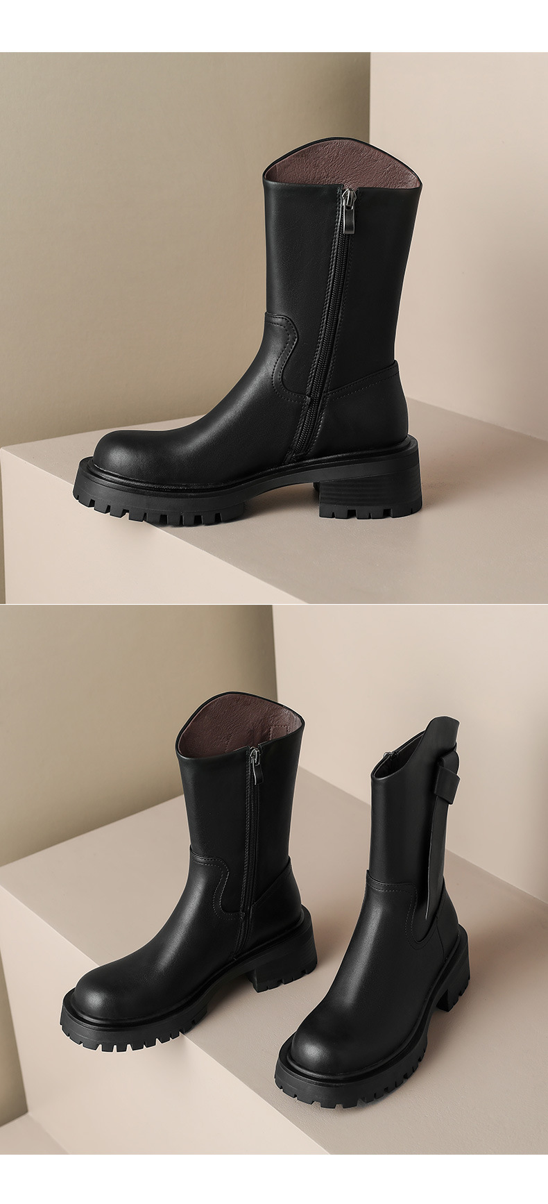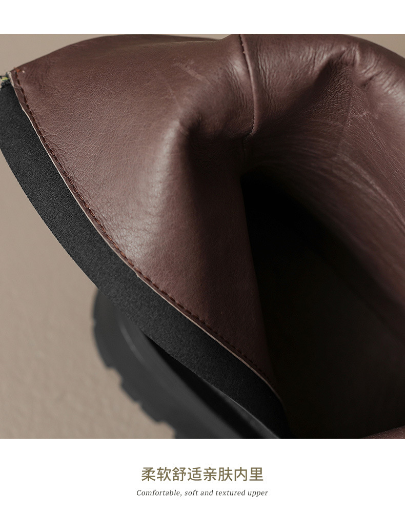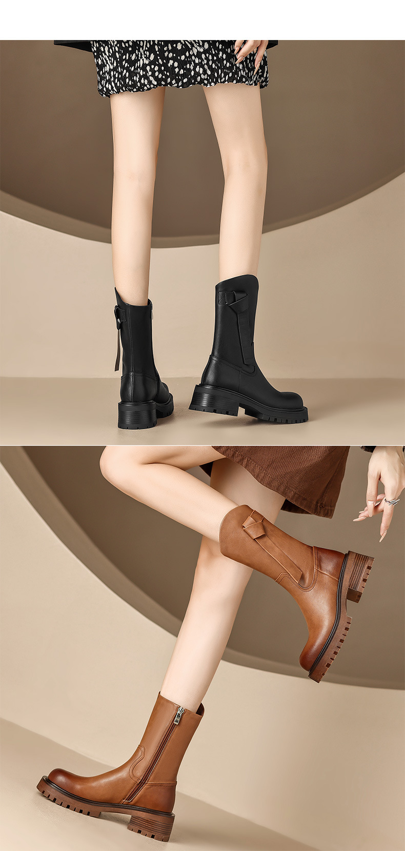 영국식 두꺼운 밑창 마틴 부츠 여성용 정품 가죽 둥근 발가락 짧은 부츠 세련된 술 웨스턴 중간 길이 부츠