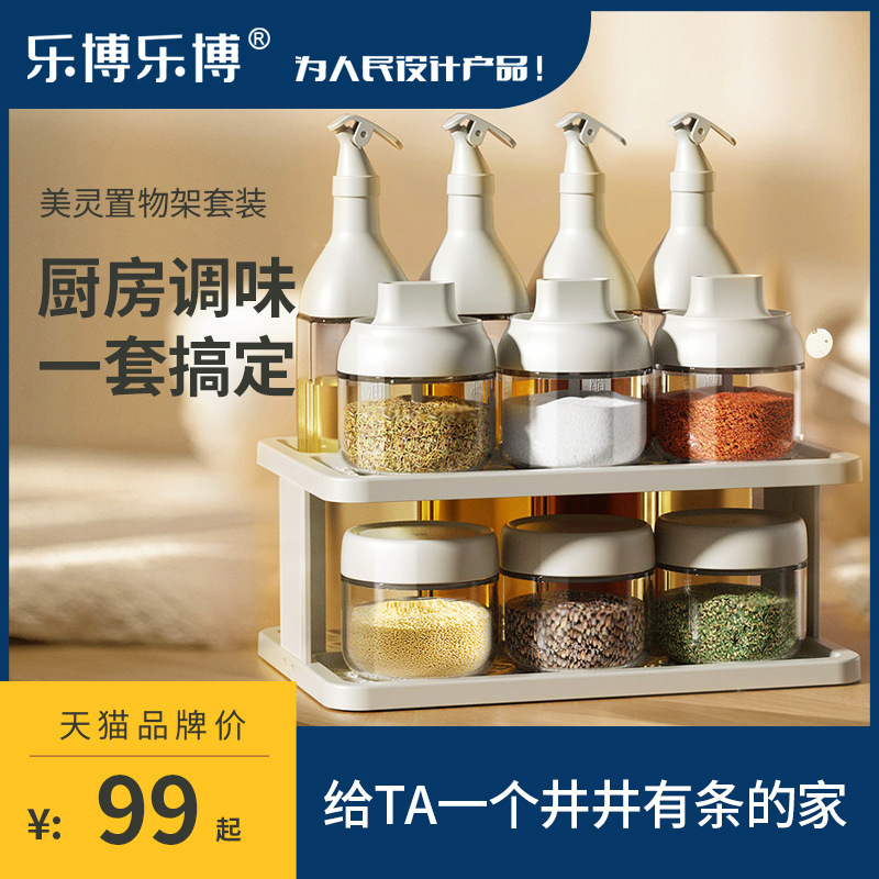 马其顿圆形油壶调料瓶500毫升*4个 + 瓦肯plus密封罐280毫升*3个 + 艾罗plus勺盖一体调味罐280毫升*3个 + 美灵双层置物架*1个  共11件套。