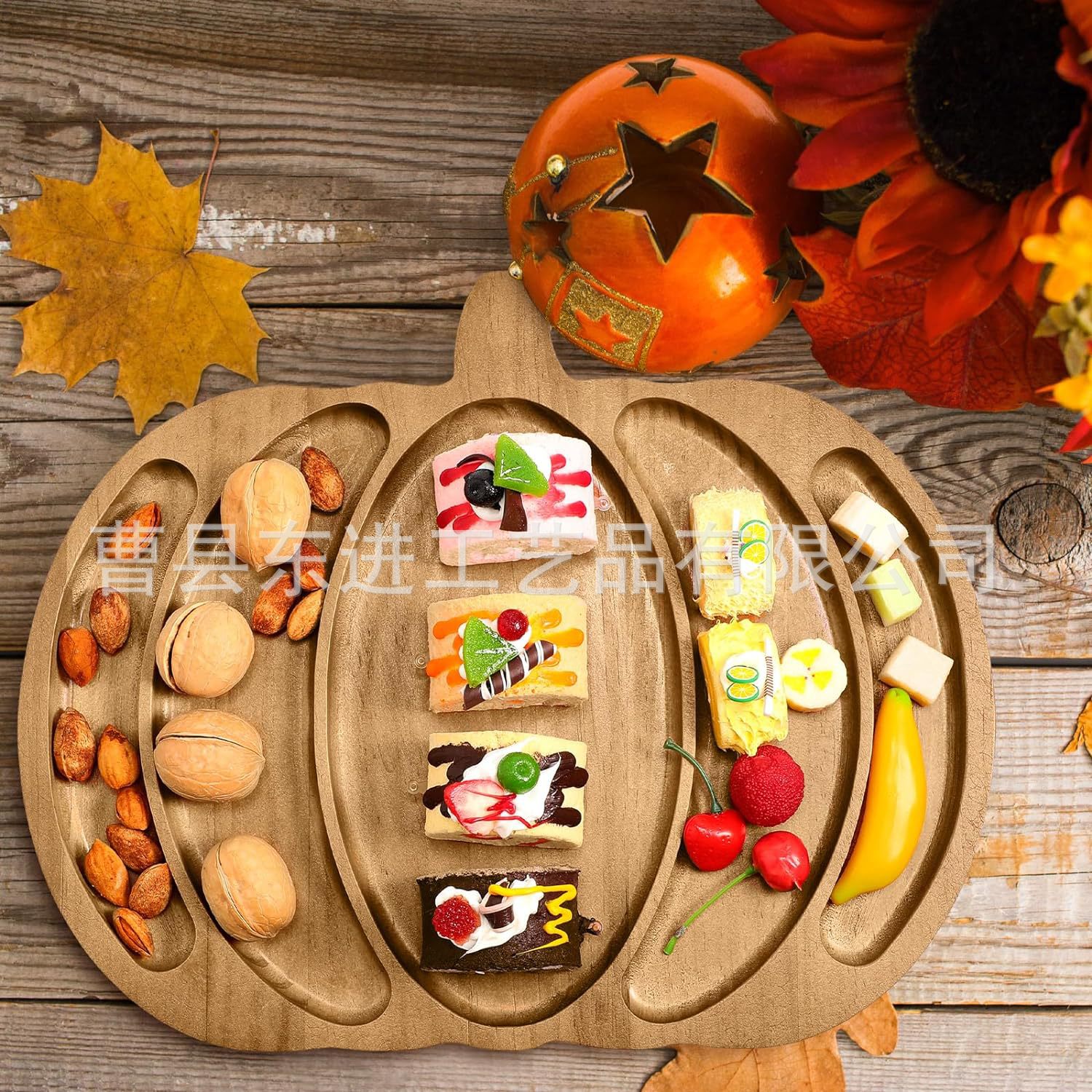 새로운 나무 호박 트레이 창조적 인 할로윈 파티 치즈 치즈 보드 스낵 디저트 트레이 솔리드 우드 트레이스토어 가기