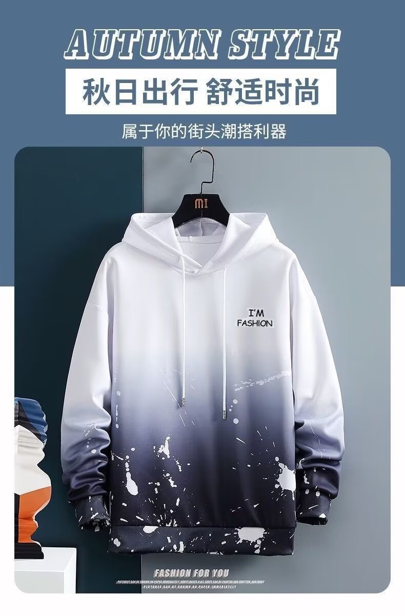 스포츠 캐주얼 세트 남자의 가을 새로운 한국 유행 느슨한 그라데이션 후드 스웨터 캐주얼 바지스토어 가기