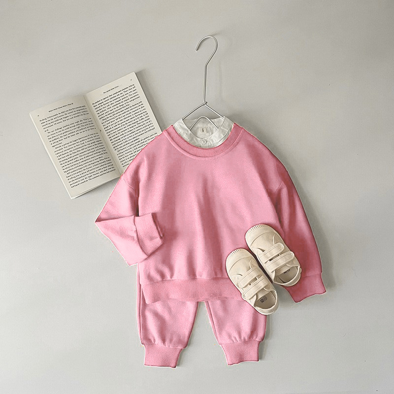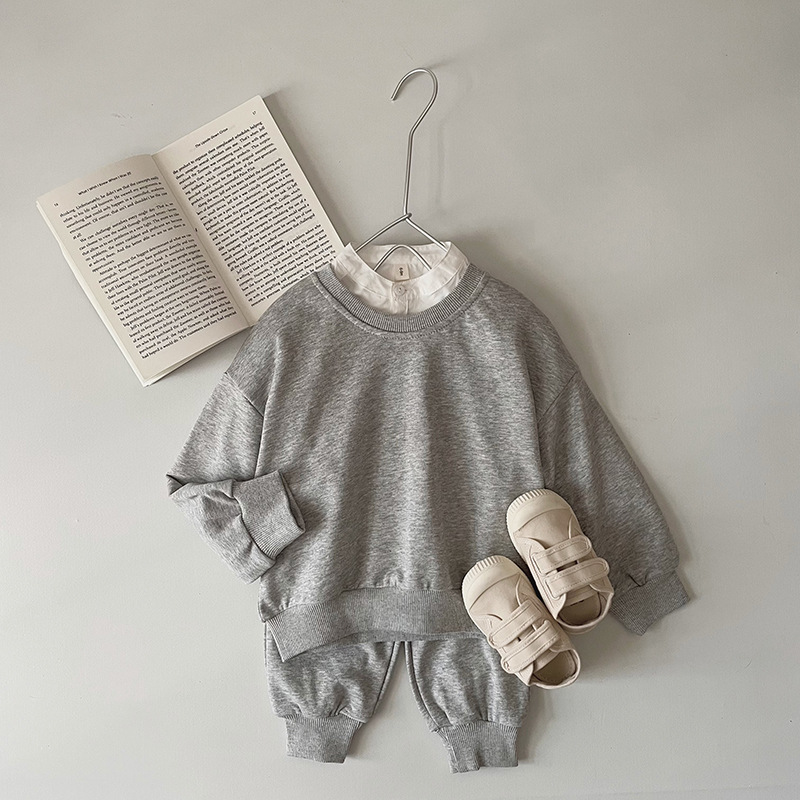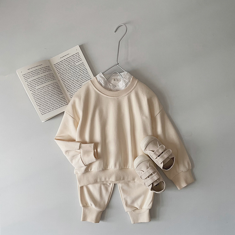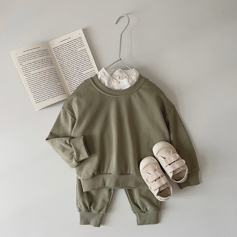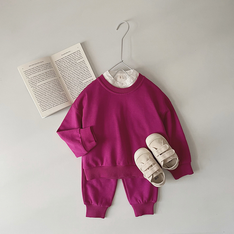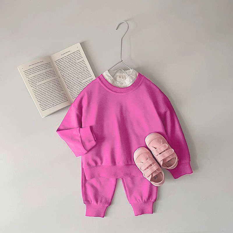 아동복 테리 코튼 도파민 단색 남성 및 여성 어린이 풀오버 크루넥 스웨터 재킷 바지 투피스 세트스토어 가기