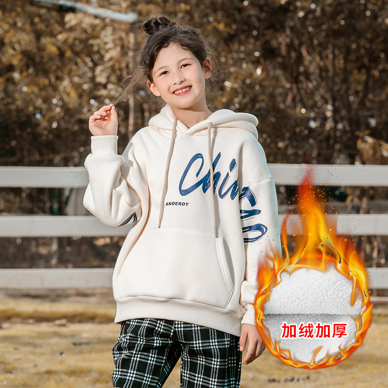 女童开衫外套2024春秋装新款加棉中大童帽衫卫衣加厚儿童上衣外套