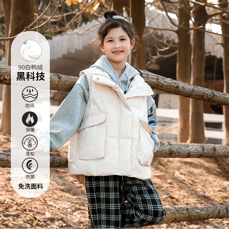 어린이 다운 조끼 가을과 겨울을위한 중간 및 큰 어린이를위한 여아 워시 프리 조끼 흰색 오리 다운 조끼스토어 가기