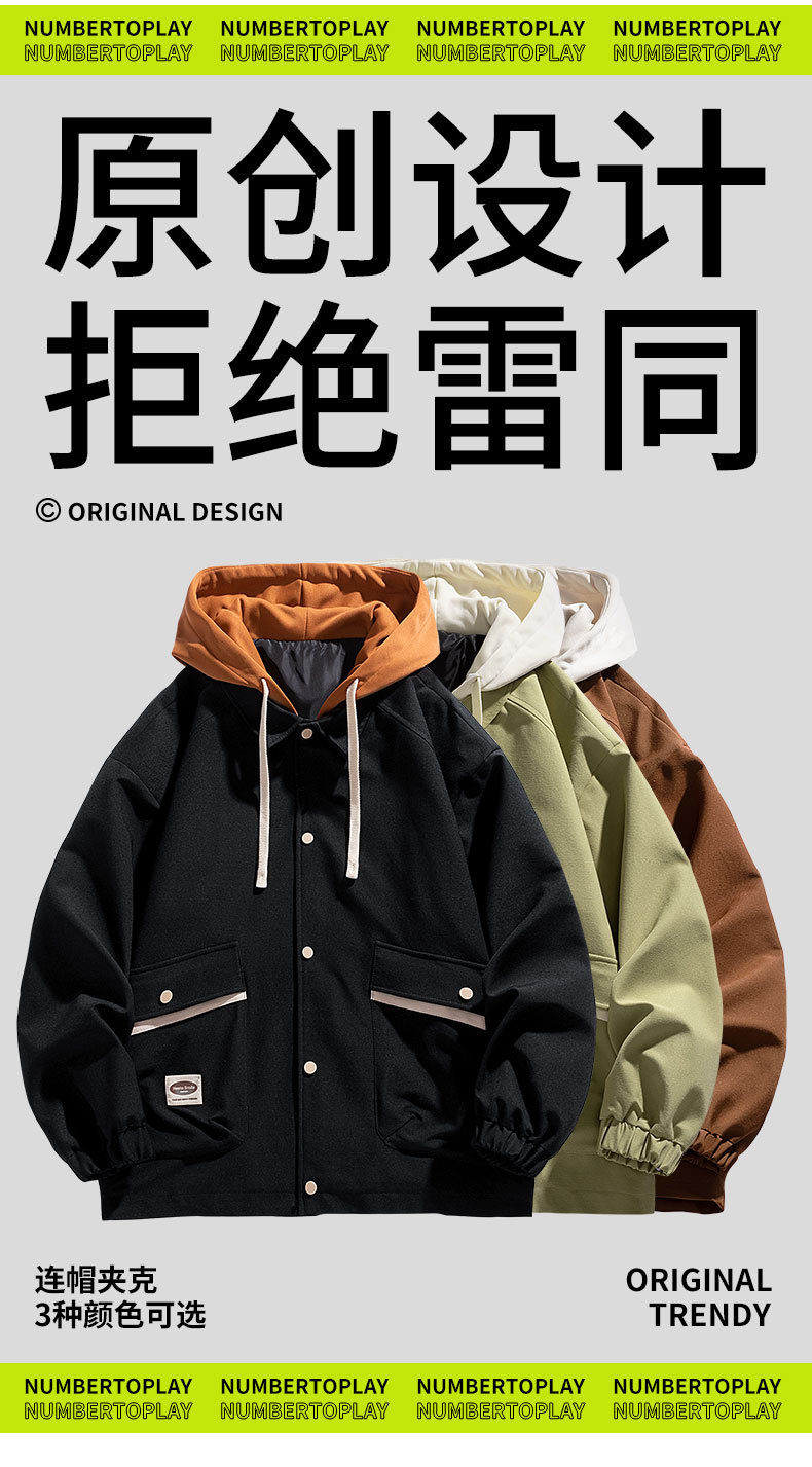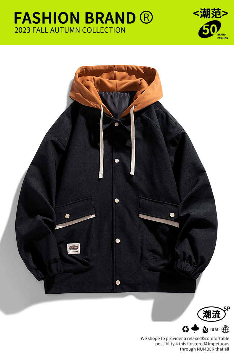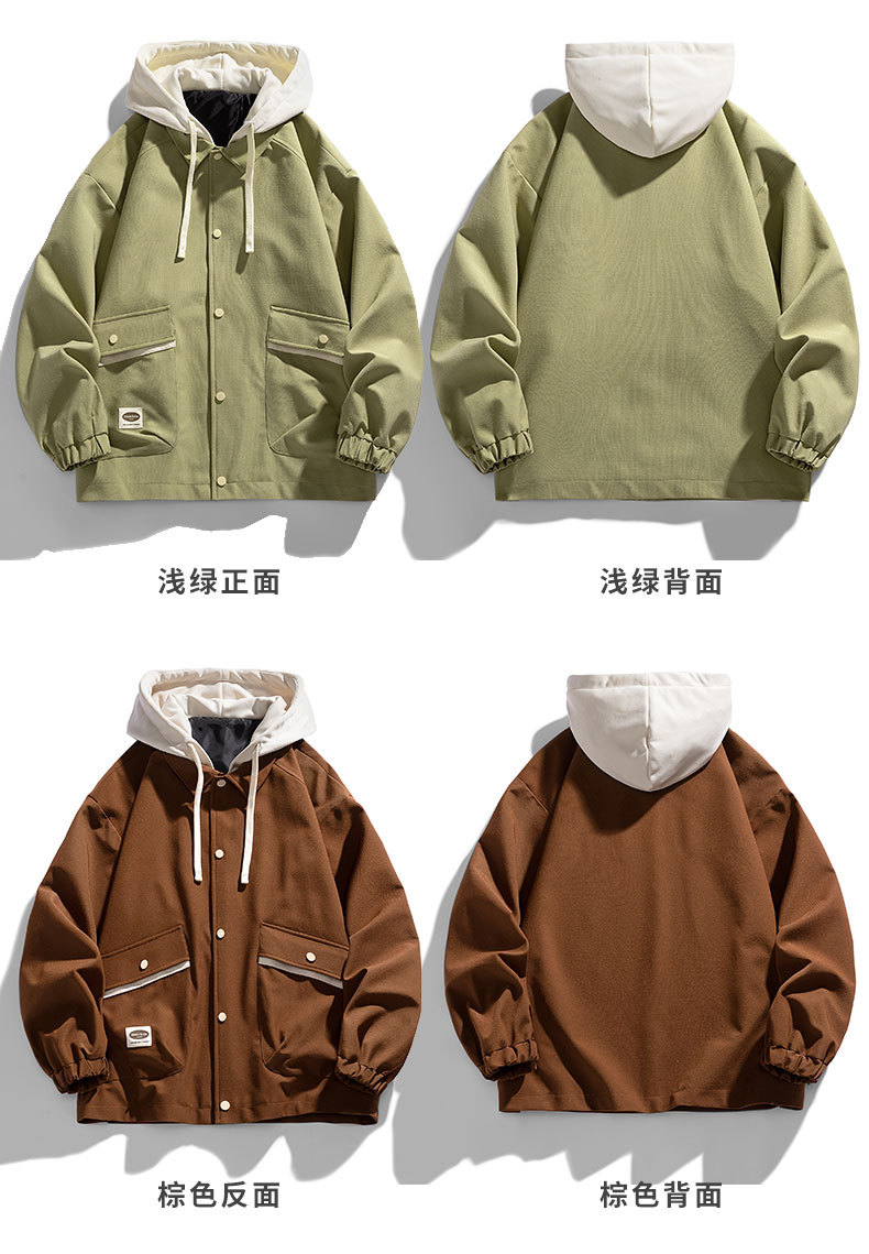 2023 가을과 겨울 십대 패션 브랜드 잘 생긴 느슨한 캐주얼 단색 멀티 포켓 탑 재킷 남성 후드 재킷스토어 가기