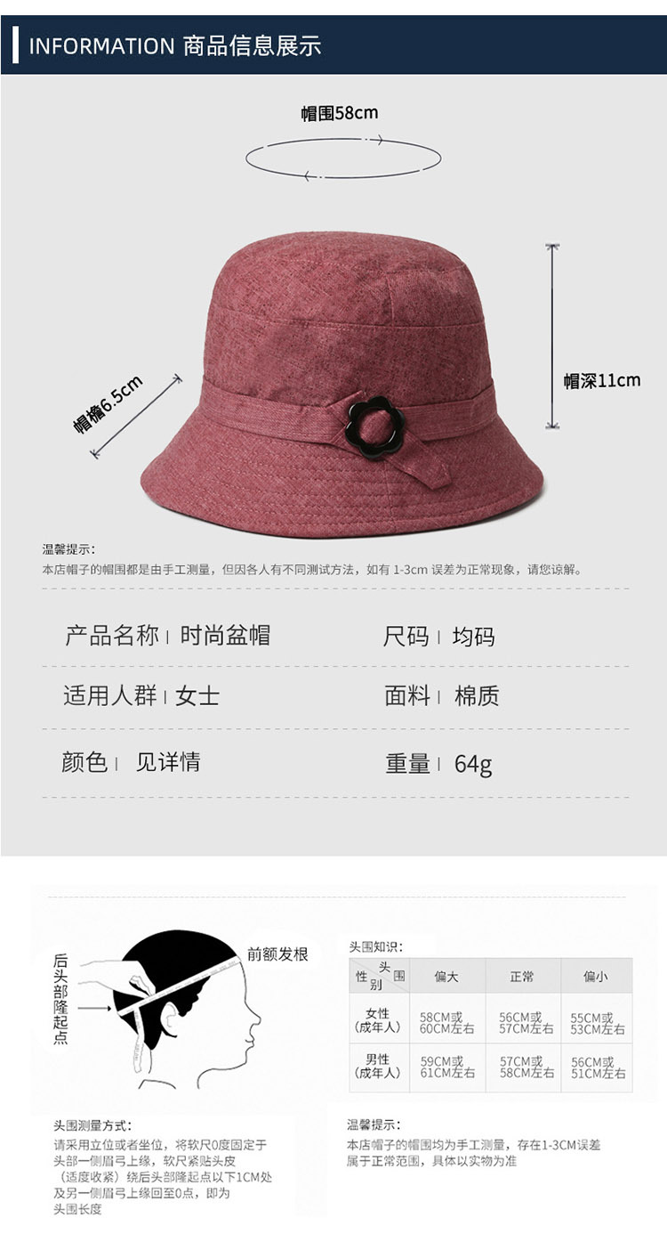 봄과 가을 캐주얼 새 어머니 모자 여성의 어부 모자 중년 및 노인 할머니 올드 레이디 봄과 여름 차양 분지 모자