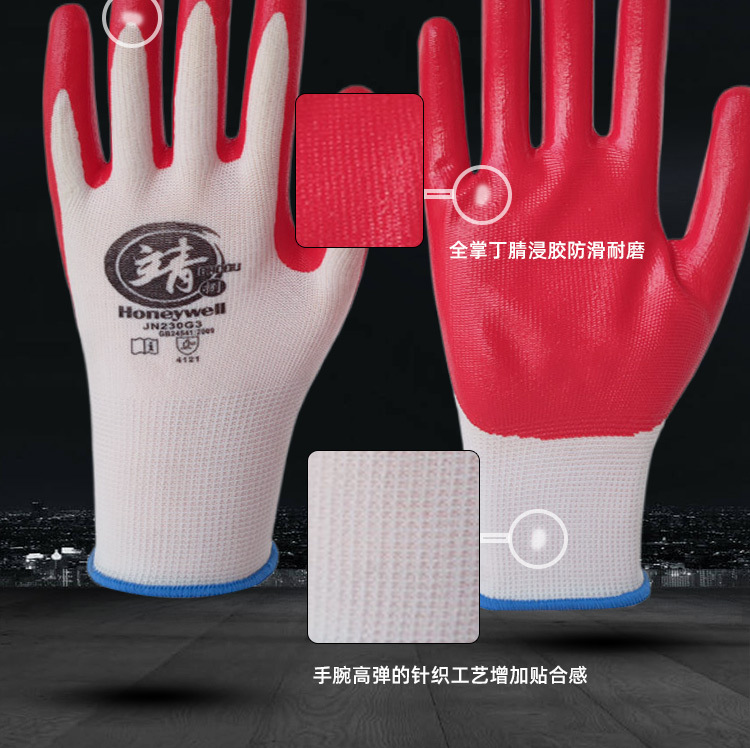 하니웰 JN230G3 니트릴 코팅 작업 장갑 나일론 니트 손바닥에 고무 코팅된 내유성 및 내마모성 안전 장갑