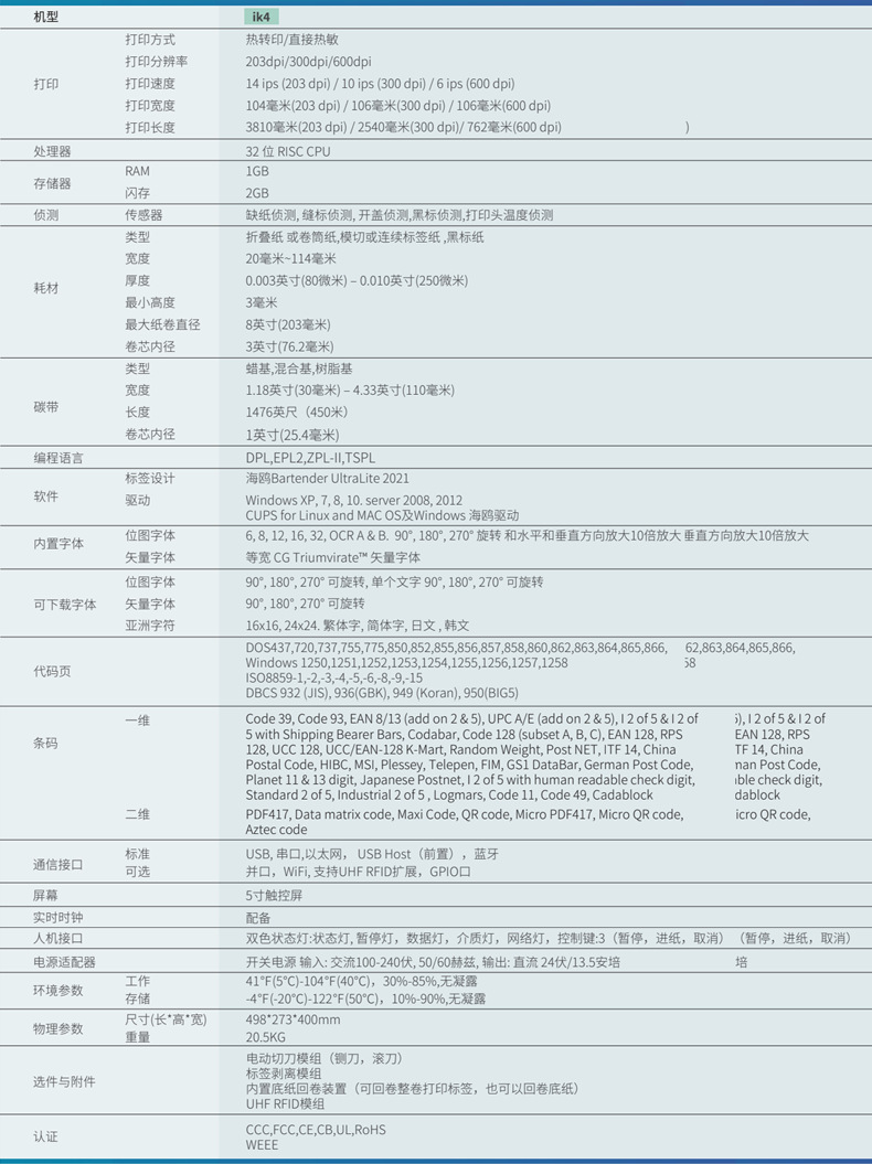• 한 Yin IK 4 300PDI [USB + 네트워크 포트 + 직렬 포트 + 블루투스]]
