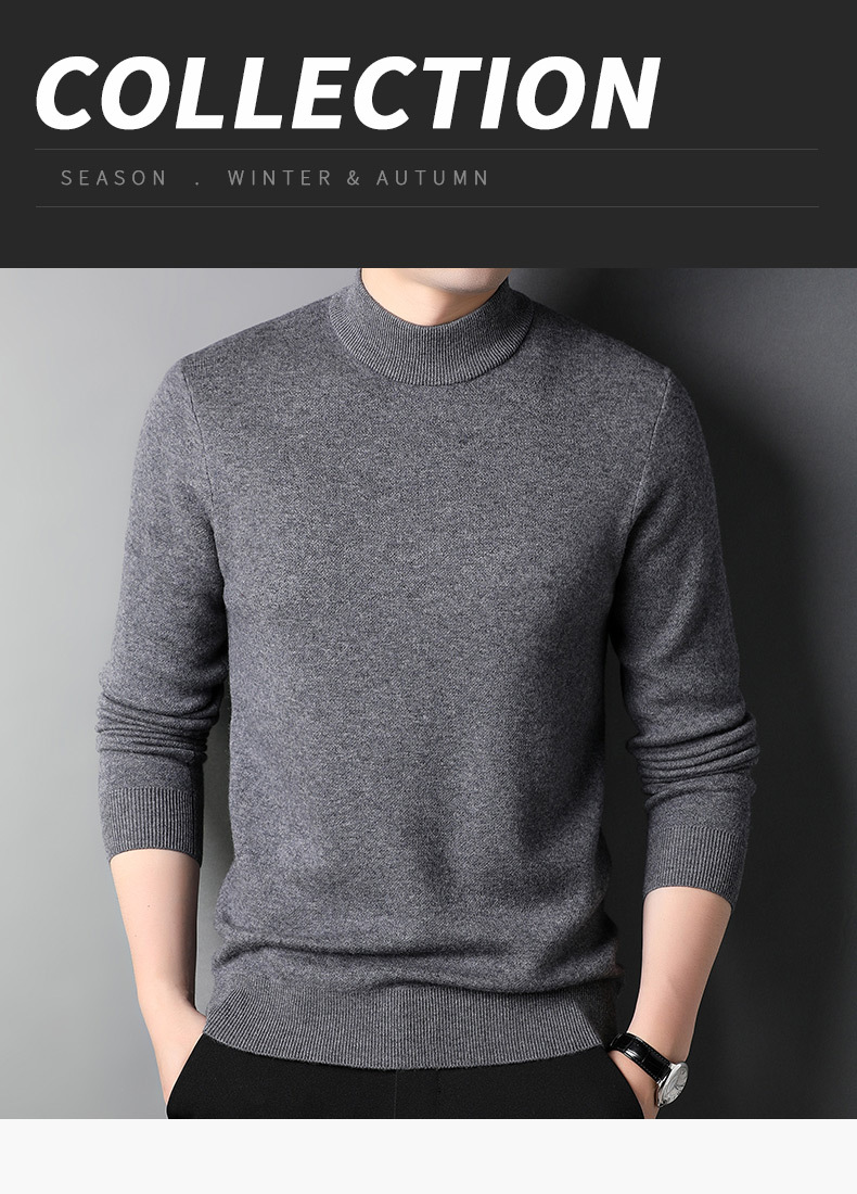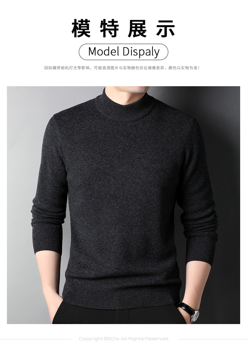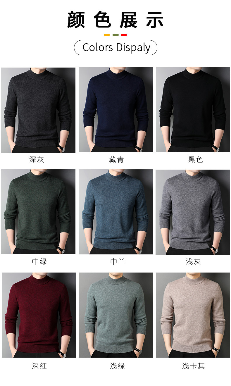 480g 두꺼운 100 퓨어 모직 스웨터 남성용 2023 가을/겨울 새로운 빛 성숙한 하프 터틀 넥 남성용 라이브스토어 가기