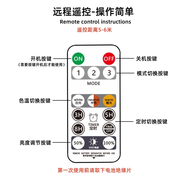 • 리모콘이있는 일반적으로 밝은 3 색 온도 (후크) 1 드래그 1