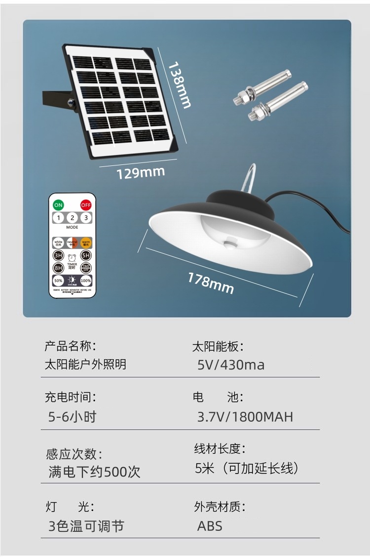 새로운 원-투-투 분할 태양열 샹들리에 야외 가로등 인체 유도 태양광 LED 램프 방수