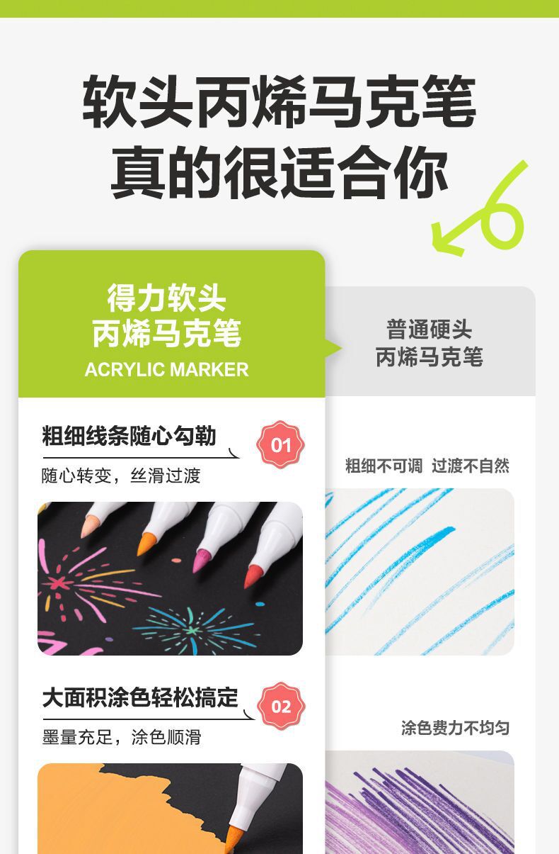 델리 소프트 헤드 아크릴 마커 방수 불투명 goo 카드 컬러 펜 학생 어린이 미술 스페셜 컬러 도매