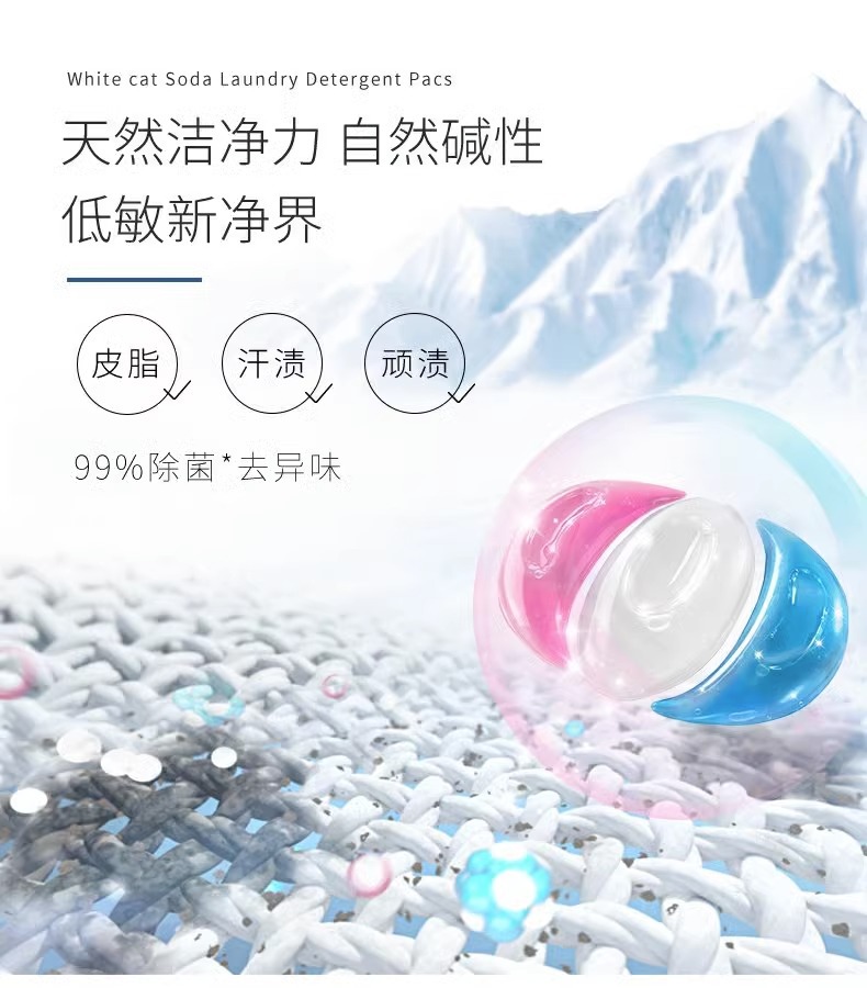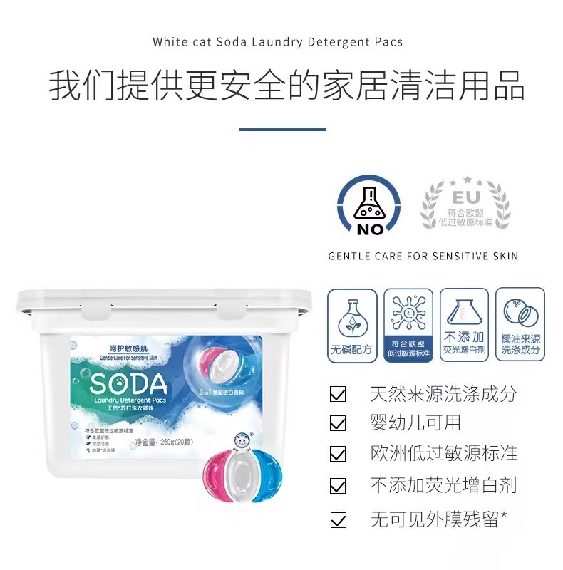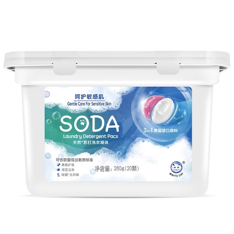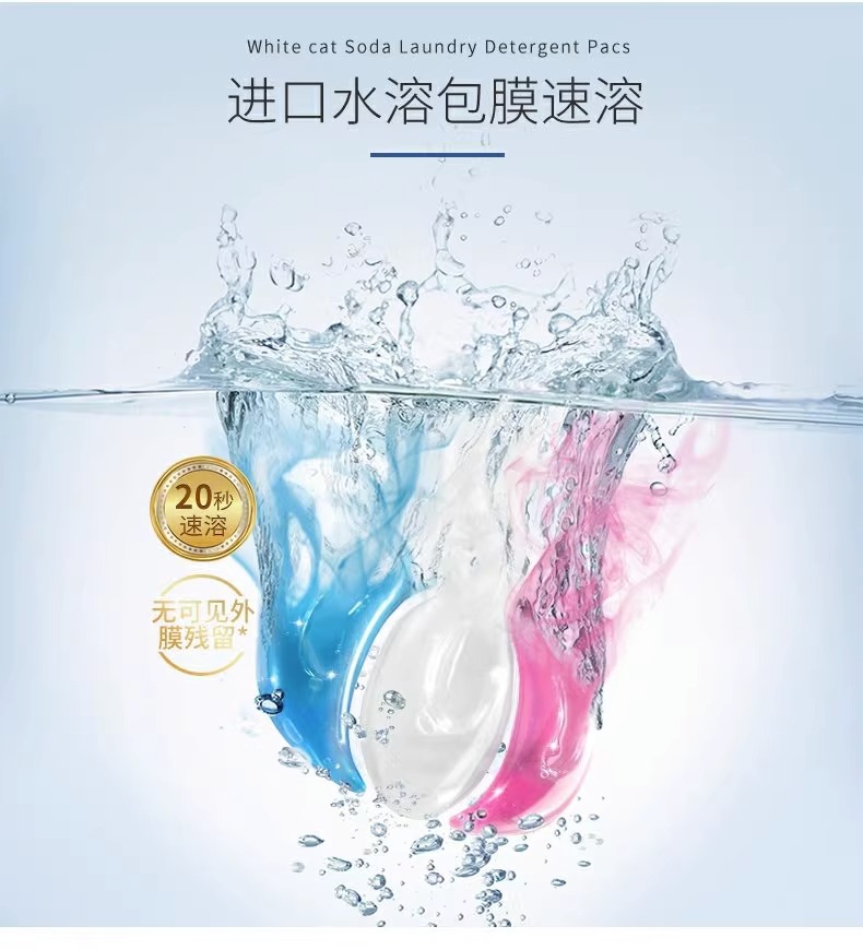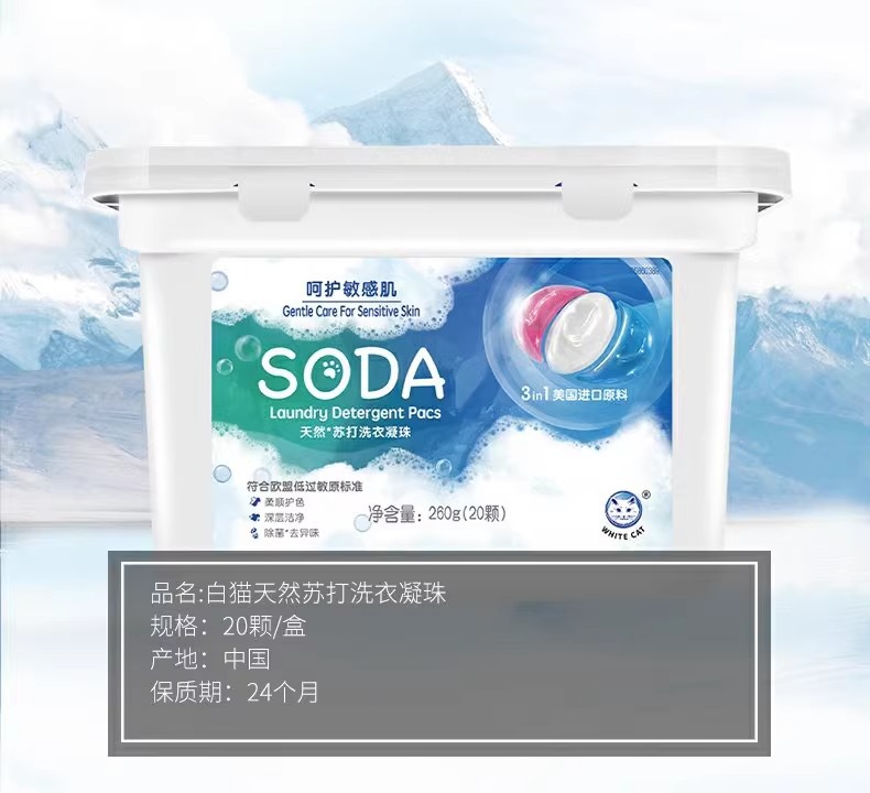 흰 고양이 천연 소다 세탁 응고 비즈 20 항균 및 냄새 제거 얼룩 및 냄새 제거용 3 색 세탁 볼 홈 팩