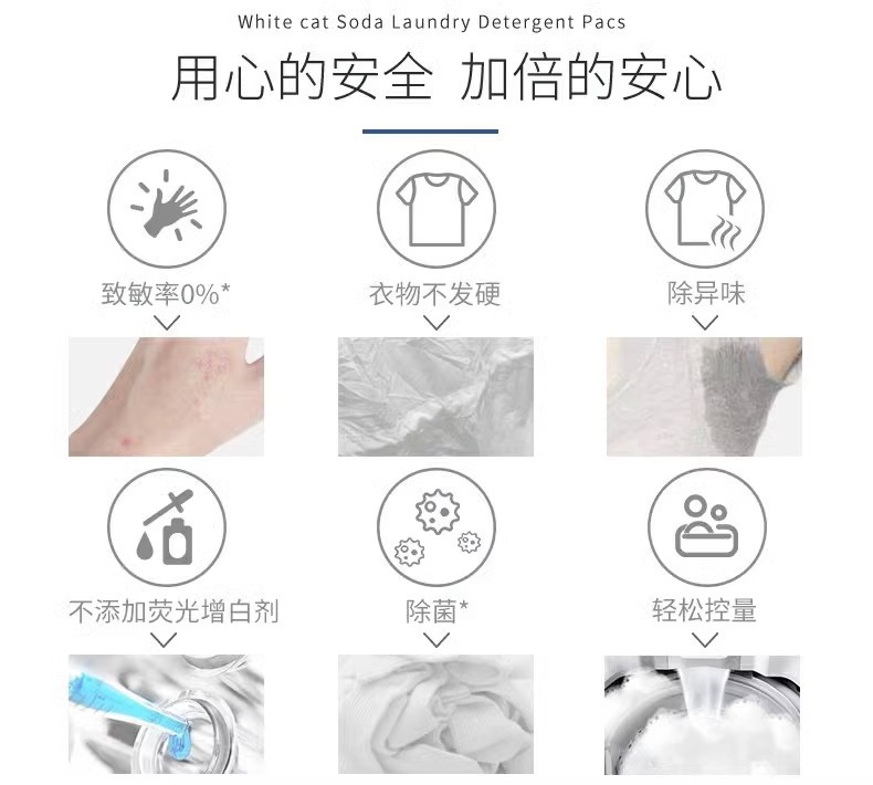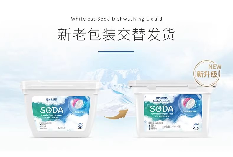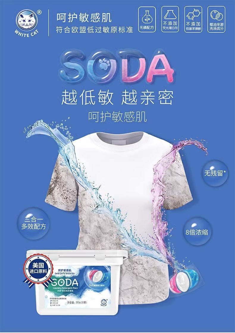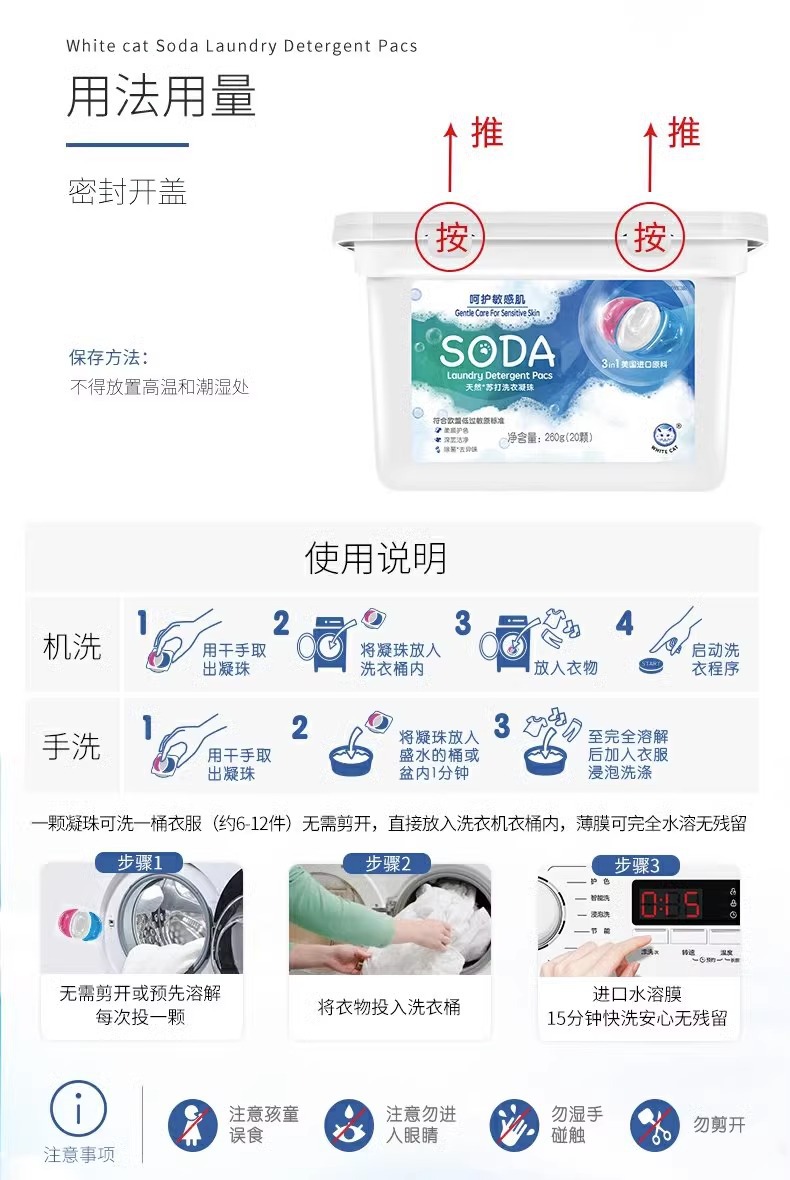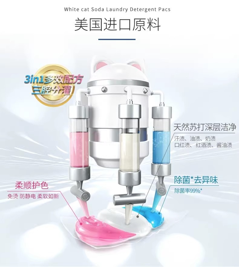 흰 고양이 천연 소다 세탁 응고 비즈 20 항균 및 냄새 제거 얼룩 및 냄새 제거용 3 색 세탁 볼 홈 팩